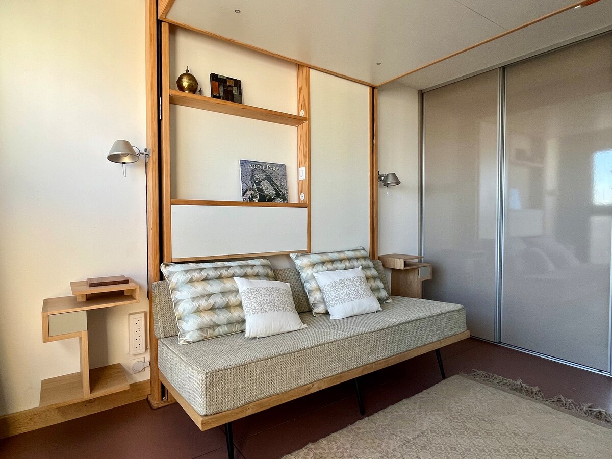 Luxurious 36 m2 studio in luxury building in Paris 15e. A legfelső szinten lenyűgöző, 180° -os kilátás nyílik Párizsra. A Javel m10-es metrótól, az RER C-től és a Szajna partjaitól 100 méterre található. A Beau-Grenelle negyed közelében számos üzlet található. Frissen felújított, teljesen felszerelt konyha. Nyáron légkondicionálás, nagy HD TV, száloptikás internet, Wi-Fi, mosógép, szárítógép, nagy zuhanykabin. 150 cm x 200 cm-es kihúzható ágy a mennyezeten. Az 1950-es évekből aláírt bútorok
