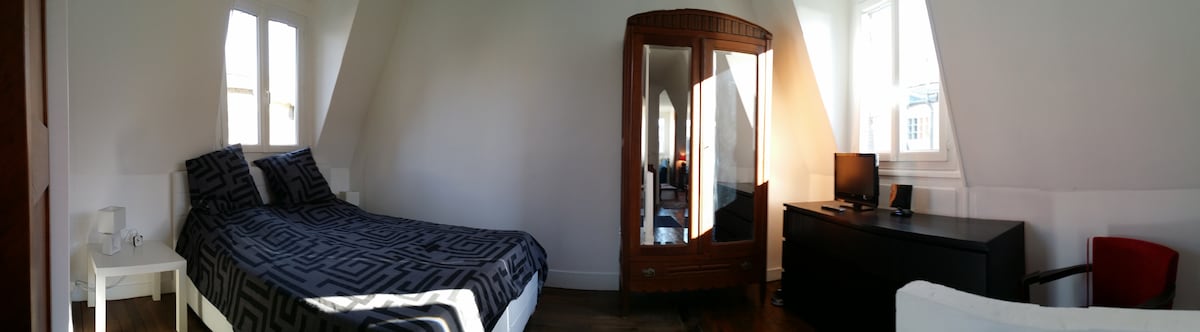 A helyem egy stúdió egy régi épület 3. emeletén, egy bájos zsákutcában, belső udvarral. 5 perc sétára vagy az Eiffel-toronytól és a Trocadérótól egy nagyon kereskedelmi és nyüzsgő utcán. Imádni fogod a helyemet a bájos Carrières patthelyzet fényessége és nyugalma miatt. A helyem alkalmas pároknak és egyedül utazóknak. Matrac hozzáadásának lehetősége egy harmadik személy számára