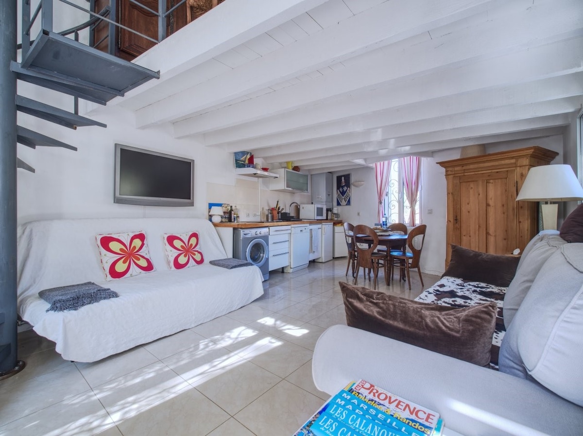 Kicsi, bájos ház kerttel a Calanques Nemzeti Parkban (teljes szálláshely, amelyet nem hagynak figyelmen kívül), 55m² teljesen felszerelt, 10 percre a Luminy Vélodrome kampusztól és a Centertől, 15 percre a Vieux Port Mucem strandjaitól és Cassis-től, 1-4 embert, 2 árnyékos, csendes, zöld környezetben nem figyelmen kívül hagyott teraszokat, La Panouse népszerű területén, amely a béke menedéke, hogy élvezze Marseille-t és környékét. Túrázás, kultúra, tengerpart. Autó ajánlott.