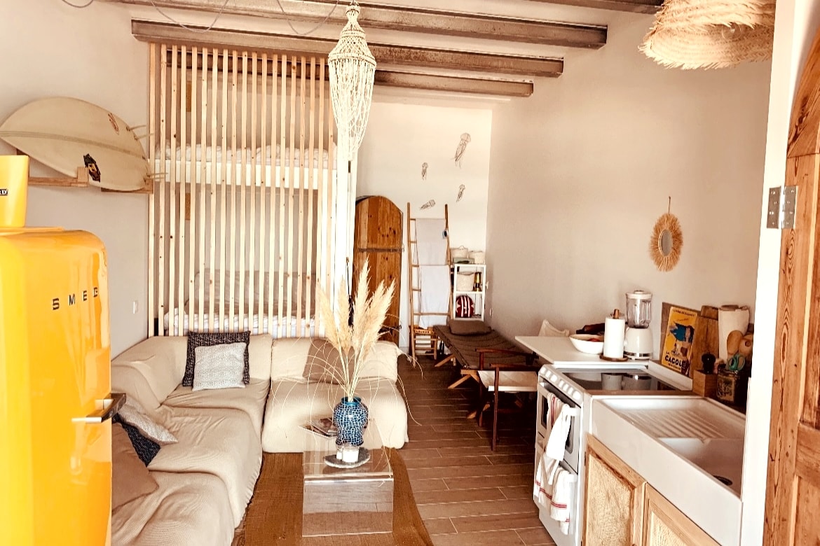 Campagne proche mer. Loin du tumulte près de l’essentiel. Ici, on vit dedans-dehors, les pieds nus, l’esprit léger. On récolte la pluie, apprivoise le vent, laisse le silence entrer. On prend le temps, on l’écoute. Cette maison est pensée pour les férus d’authenticité, de nature. Nous la rénovons avec passion depuis 9 ans. Le loft est né en 2022. Nous aimons l’architecture, le surf, le yoga, le vin, l’art… mais aussi l’idée d’un accueil sincère.Faites un pas de côté, venez tout simplement
