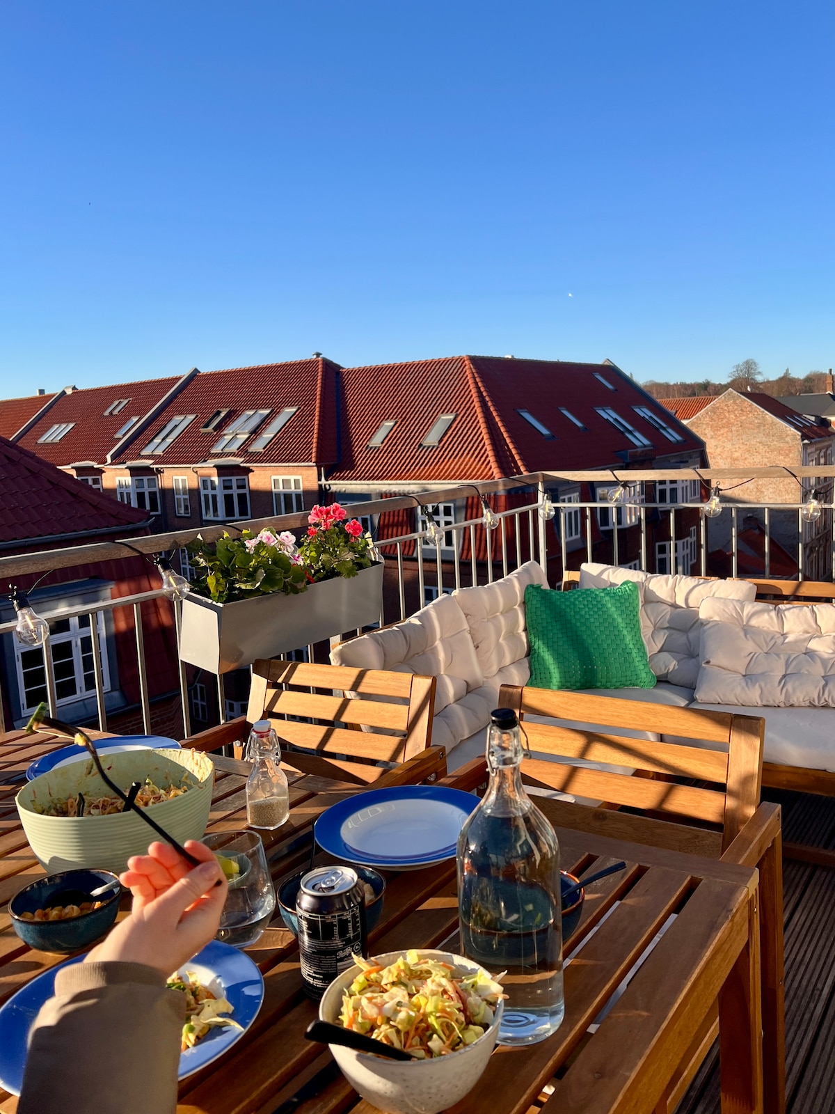 Light and airy apartment with high ceilings. Decor style is Nordic and cozy. High quality beds. Sea views from the bedroom. All modern conveniences. Unique terrace with lounge furniture and the most beautiful morning sun and sea views. Lys og luftig lejlighed med højt til loftet. Indretningsstil er nordisk og hyggelig. Senge i høj kvalitet. Havudsigt fra soveværelset. Alle moderne bekvemmeligheder. Unik terrasse med loungemøbler og den skønneste morgensol og havudsigt.