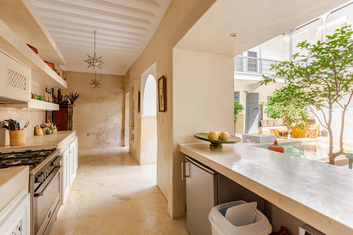 Dar Nurah ist ein stilvolles Riad für bis zu 6 Gäste, besonders komfortabel für Familien, Freunde oder Paare mit bis zu 4 Personen. Das Haus wird immer komplett vermietet, sodass ihr das Riad ganz für euch allein habt und keine anderen Gäste anwesend sind. Die Wohnfläche beträgt insgesamt ca. 180qm. Es gibt 2 wunderschön eingerichtete Schlafzimmer mit eigenem Bad, ein Wohnzimmer mit Schlafsofa und viele offene Wohnbereiche. Auf der Dachterasse findet ihr einen Essbereich für 4 - 6 Personen.