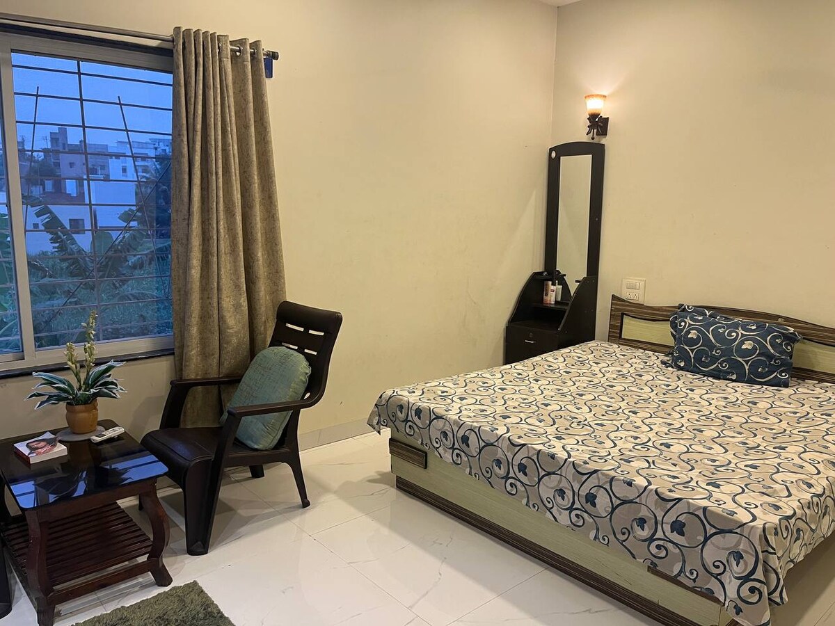 Experience Kolhapur from your own private, spacious bungalow - perfect for families and temple travelers. Enjoy free covered parking, a calm residential vibe, basic kitchen for simple meals, and terrace access for morning tea. We’re a 10–12 min drive to Shri Mahalaxmi Temple and well connected to Rankala, Panhala and Jotiba. Great for - Family temple trips & weekend getaways - Long drives via Konkan/Goa highway stopovers - Short work trips (Wi‑Fi + compact desk)