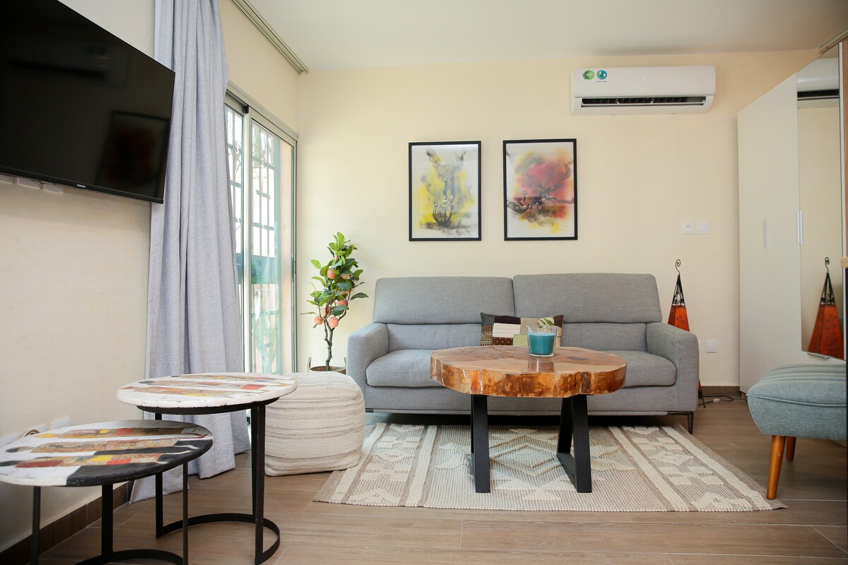Bienvenue dans ce charmant T2 Cosy à Cocody, Abidjan, niché dans un quartier neuf et très prisé. À deux pas des restaurants et pharmacies, profitez d’un cadre calme, verdoyant et parfaitement sécurisé. Situé au 1er étage, l’appartement lumineux offre tout le confort pour se détendre ou travailler sereinement. Idéal pour un séjour relax ou un voyage d’affaires réussi, réservez dès maintenant votre parenthèse cosy.