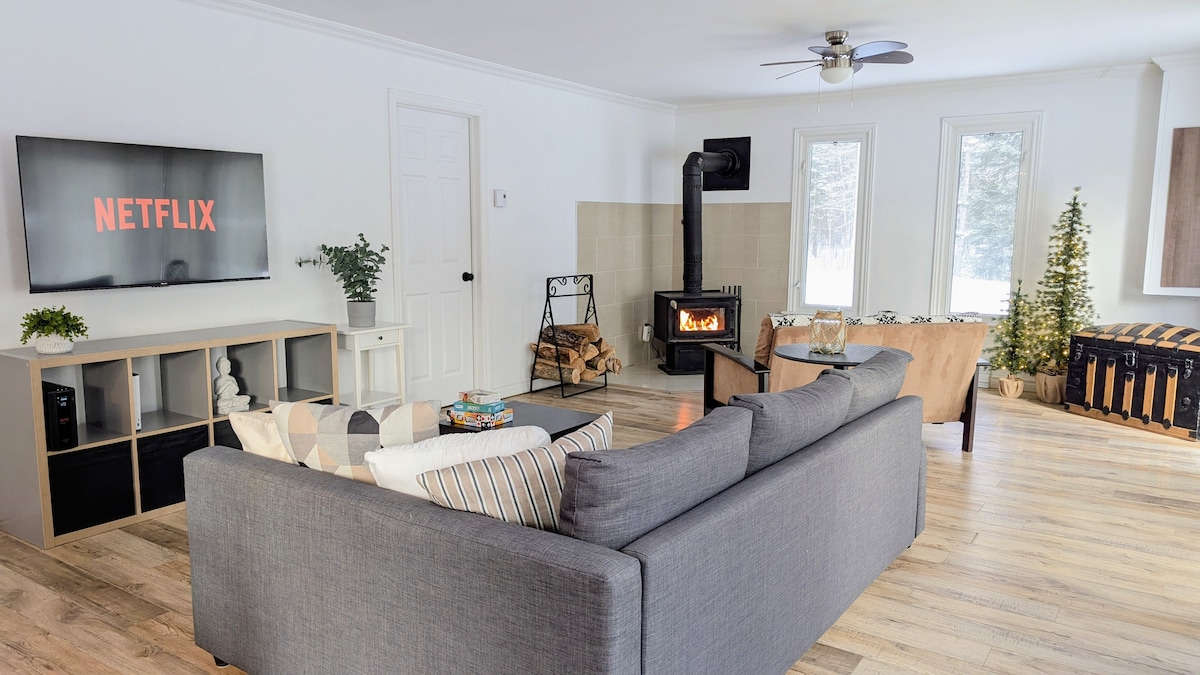 Bienvenue au Shack, Un vrai chalet situé au plein cœur de la forêt boréale dans les Hautes-Laurentides. Bordé par l'immense Baskatong et à proximité du parc de la montagne du diable, venez vous perde dans les centaines de km de sentiers. Visitez les chutes du windigo ou explorez les 160 îles aux plages de sable. Contemplez le coucher du soleil sur le quai, dans le spa ou sur terrasse avec une bière de microbrasserie. Accéder aux sentiers fédéré, directement du chalet. Animaux au RDV
