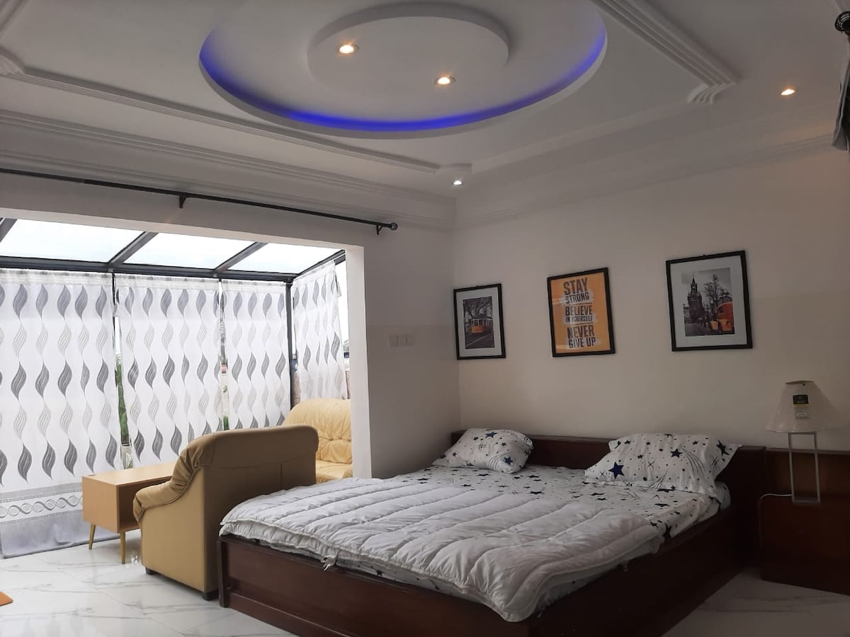 Located in the new Bethel Estate of GCITT Calavi, opposite the 20,000 new social housing units of the Ouedo Estate (under construction), this villa is close to the touristic lake of Ganvié and Agoualand Zoo This fully private residence is ideal for family vacations, group stays, or getaways with friends. Amenities Swimming pool,Jacuzzi,Air conditioning, Ceiling fans,Wi-Fi,TV channels available,Outdoor security cameras Note: Electricity meter recharge costs are the responsibility of the guests.