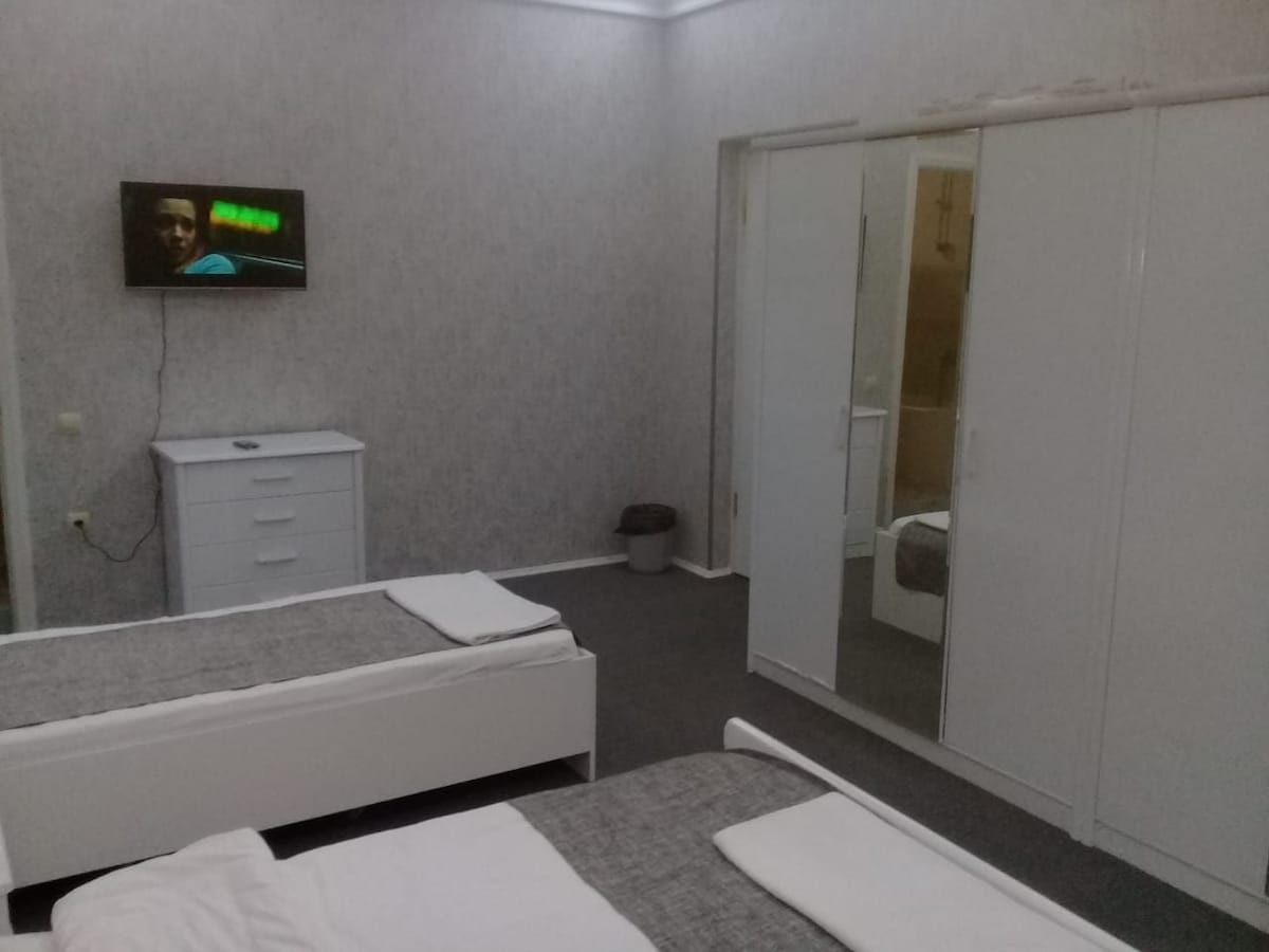 Bu rahat, məThe hotel is located in the city center, just a 5-minute walk from the Old City. It’s within easy walking distance to all the main attractions and central areas, yet situated in a quiet and peaceful neighborhood. The apartment features its own private kitchen, and guests are welcome to enjoy the beautiful view from the hotel’s balcony a perfect spot to relax after a day of exploring the city.rkəzdə yerləşən yerdə sadəlikdən zövq alın.