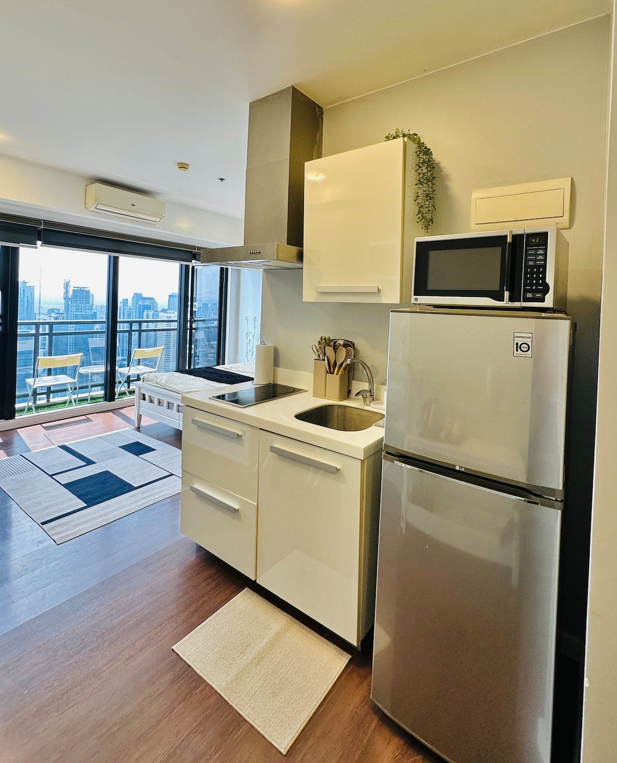 Élvezd a rövid vagy hosszú tartózkodást a luxuskivitelű, 1 hálószobás loftlakásomban, amelynek erkélye kényezteti magát az ünnepek alatt vagy a kényelmes king méretű ágyban vagy a kényelmes bőrkanapéban, játszik a Nintendo Switch konzolunkon, nézhetsz például filmeket a Netflixen az 55 hüvelykes tévében, vagy hatékonyan dolgozhatsz gyors Wi-Fi-vel, nyomtatóval, szkennerrel. Az egység fényűzően berendezett és felszerelt. Az egység az SMDC LÉGI REZIDENCIÁIN található Makatiban.
