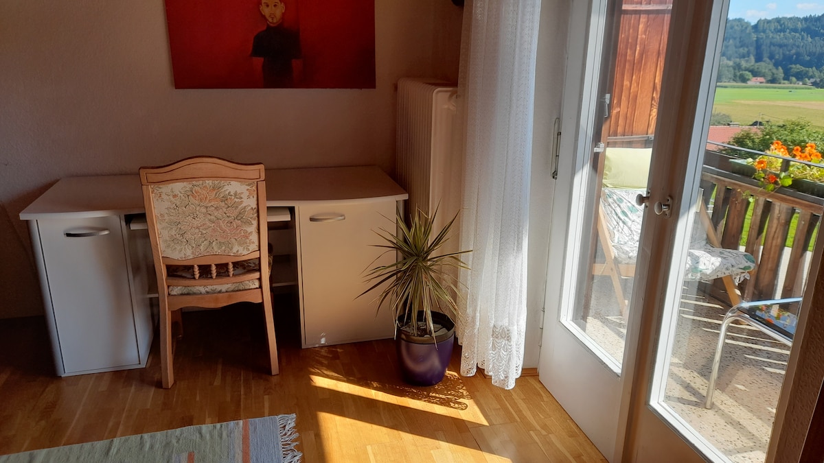 > gyönyörű kilátás > Elektromos tárolóhelyiség e-kerékpárok számára > Háziállatokat is fogadunk > Elkerített kert > Okostévé és Wi-Fi. > nagy ágy 2 m x 2 m > Parkolás közvetlenül a bejárati ajtó előtt > Kiságy és etetőszék kérésre rendelkezésre áll > 3 perc autóval Velden központjától