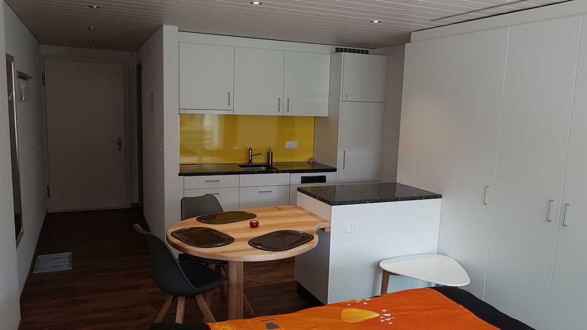 Wake up to stunning mountain views in the heart of Adelboden. - Bright and modern studio - Sleeps up to 3 guests (1 double bed & 1 sofa bed) - Fully equipped kitchen - Scenic mountain view - Bathroom with shower & essentials - 2 minutes to ski lift and 3 minutes to Dorfstrasse (shops & restaurants) - Free parking - Right next to the Spa and Wellness of the Hotel Bellevue You will receive a discount for the spa at the Hotel Bellevue during your stay!