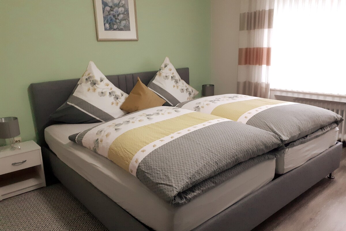 BINEVA - Kiváló minőségű lakásunk nincs messze a legendás Nürburgringtől, és a Vordereifel motorkerékpár- és túrázóparadicsom közepén található. A 112 m2-es lakásunk legfontosabb jellemzői: → 2 nagy erkély fantasztikus kilátással az Eifelre és a gázgrillre → kiváló minőségű, teljesen felszerelt konyha → tágas étkező színárnyalatos környezeti fénnyel → 2 hálószoba 4 főig, fő hálószoba erkéllyel → Parkolás a háztól balra és zárható garázs → Mosógép és szárítógép