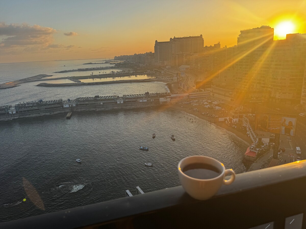 Látványos kilátás nyílik Alexandria városára és a Földközi-tengerre. Teljesen berendezett, teljesen felszerelt konyhával. Második sor a tengertől, nem magas épületek akadályozzák a kilátást. 5 perc sétára van a Citadella Qaitbay, az Akvárium és a Görög Club. 15 perc autóútra Kom el Shoqafa katakombáitól, a Pompeius-oszloptól, a Nemzeti Múzeumtól és a Bibliotica Alexandriától. A helyi piac 200 méteren belül van. Gyalogos távolságra a városközponttól, nagyobb üzletek, éttermek és kávézók.
