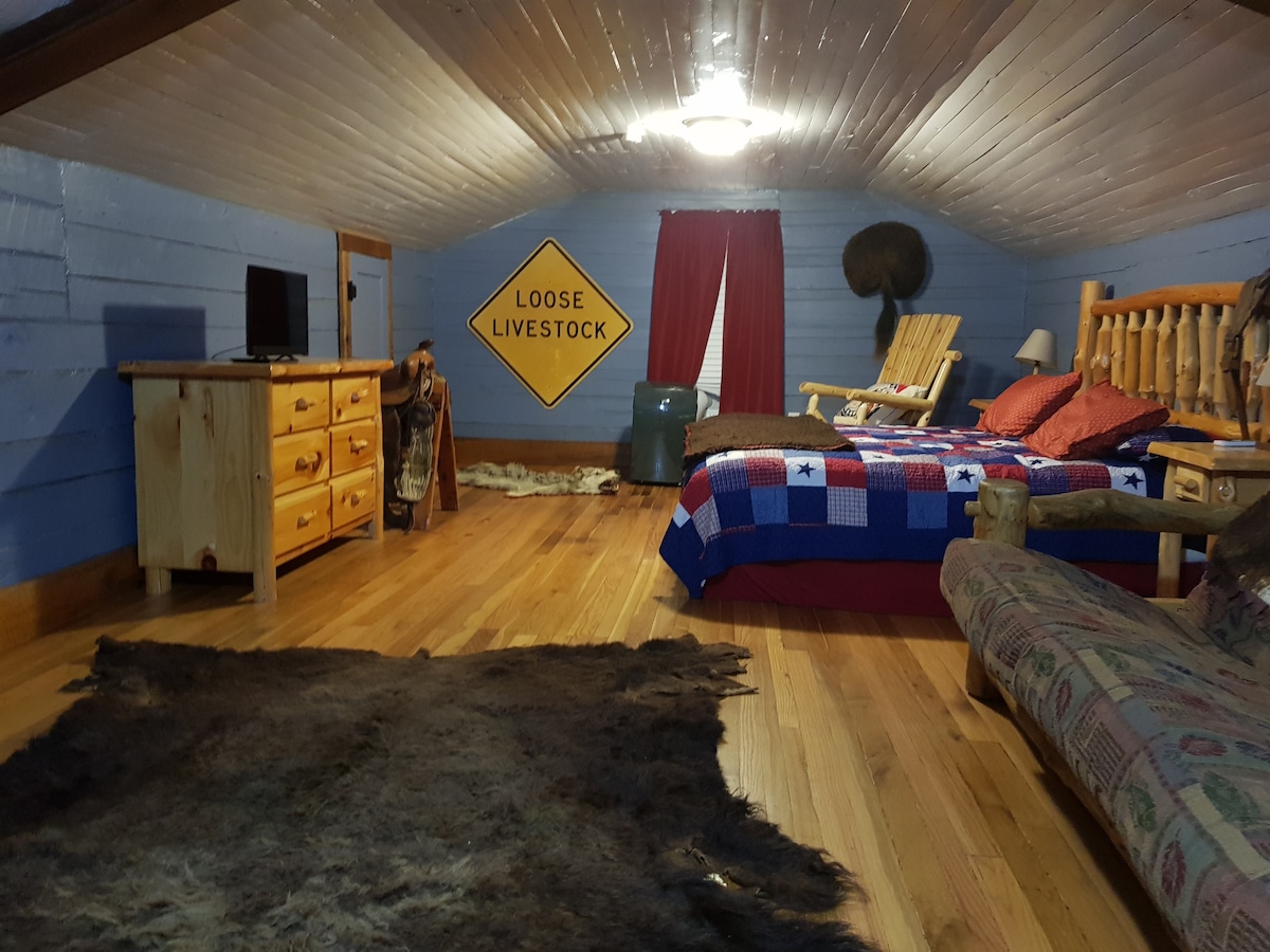 Peaceful privacy on our 227 acre farm, convenient to Bowling Green, Mammoth Cave, and Barren River Lake. The 900 sq ft loft above our home’s garage has private exterior entrance to the finished modern farmhouse loft with completely separate ductwork and HVAC system. The loft features everything you need to stay at the farm and relax: high end, furnished kitchen to cook meals in & fiber optic internet to work or stream. Adirondack chairs and a propane fire pit make for wonderful stargazing.