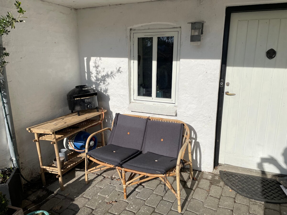 Hangulatos alagsori lakás hálószobával és nappalival, kanapéággyal, kis konyhával, hűtőszekrénnyel és kis fagyasztóval, légsütővel és 1 főzőlappal, vízforralóval és mikrohullámú sütővel. Étkező 4 fő részére Szép fürdőszoba zuhanyzóval. 3 perc autóútra a Gråsten kastélytól, 12 perc Sønderborgtól. Néhány perc sétával egy kis hangulatos strandot érhet el, és a ház melletti parkolóból kilátás nyílik a Nybøl Norra