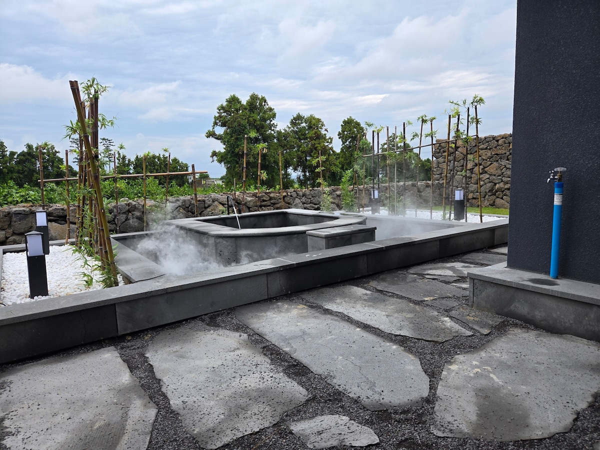 szaunával, milyen szép ez a ház. Jeju szigetén.