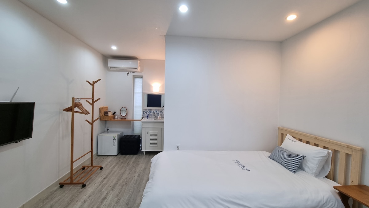 Az Olle 5-ös túraútvonalon található, és közel van Seoyeon házához, a Wimi kikötőhöz és a Gongcheonpo strandhoz, ezért kiváló hely egy reggeli sétához reggeli előtt. Kényelmesen eljuthatsz a Huwaeri-be, a Citrusmúzeumba, a Soisokkakba, a Jeongbang-vízeséshez és a Seyeon-kyóhoz. Azok az Olle-rajongók, akiknek nincs autójuk, könnyen megtalálhatják a helyet, és a buszmegálló 1 percre van, ami az egyik előnye. Egy esős napon mit szólnál ahhoz, hogy emlékeket szerezz egy Jomuljomul kerámiakészítési élményprogramon?~~ Szerintem ez jó ötlet. Ez egy csendes panzió 2 fő részére, ahol reggelit is szolgálnak fel. Minden szoba a 2. emeleten található
