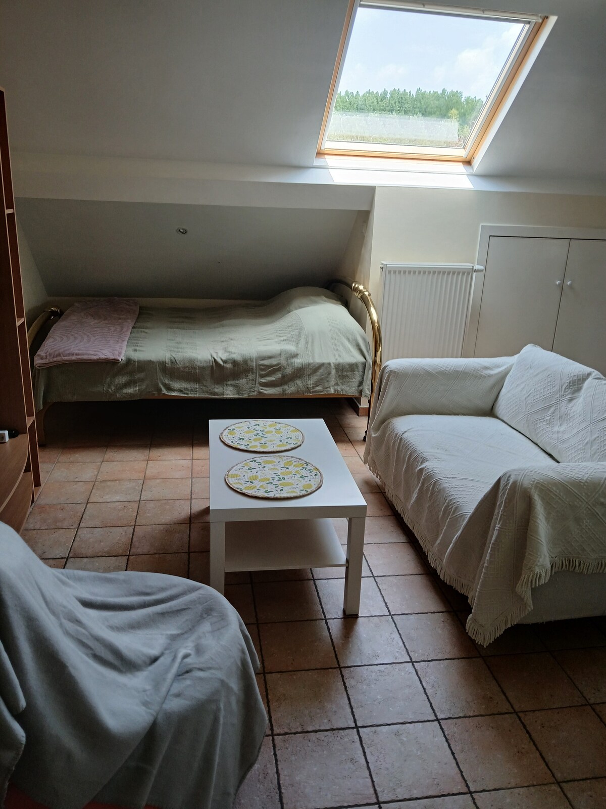 A tetőtéri stúdió Affligem csendes és zöld területén található, ahonnan könnyen megközelíthető Brüsszel. Az Essene-Lombeek és Liedekerke állomások a közelben vannak. És csak egy közlekedési lámpa van az E40 kijáratáig (600 m). A környéken gyönyörű túraútvonalak és nevezetességek, például az Affligem kolostor található. A stúdió független, külön bejárattal rendelkezik, és kényelmes a csendes vagy üzleti látogatáshoz.