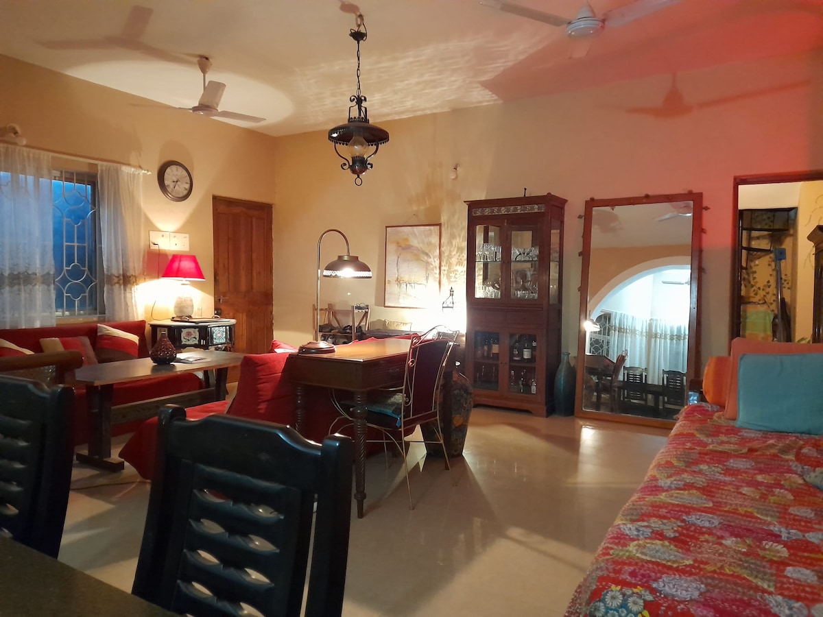 Experience solitude living by the river. This space is located on the bank of serene Chapora river, very close to Uddo beach. Wakeup to sound of waves and experience aquatic life in proximity. House has been curated by an Artist which adds unique sense of aesthetics. Location is most popular for best Sunsets in Goa. Nature trails,Mangroves,Bird watching,spot River Dolphins and Otters. 2 min from Issagoa,Cohin 10min from Thalassa, Centre location to Vagator and Morjim