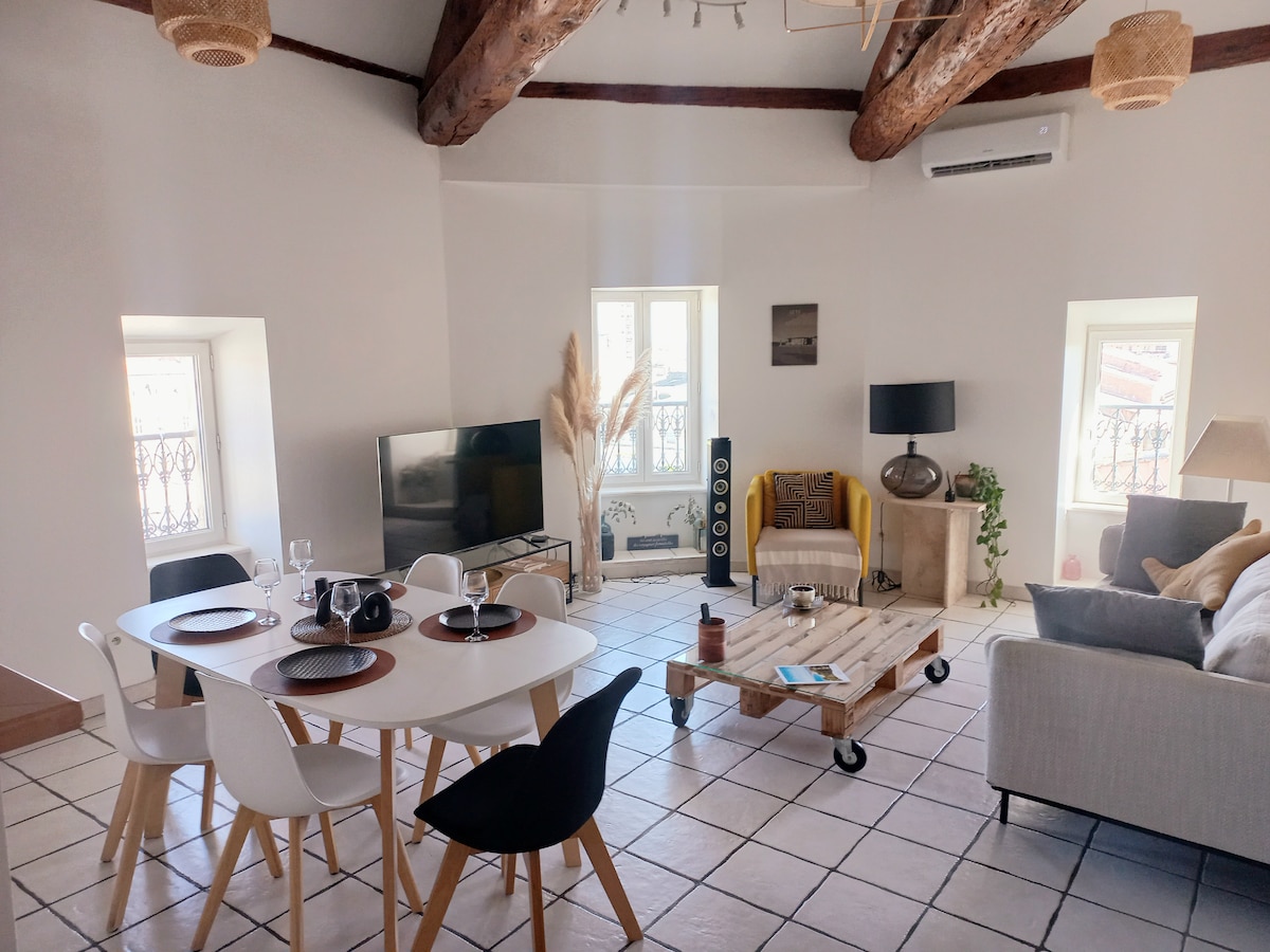Bienvenue dans ce magnifique loft de 120m² en plein cœur de Sète ✨ Idéal pour séjours en famille ou entre amis (jusqu’à 6 personnes), vous profiterez d’un espace lumineux, spacieux et plein de charme avec ses superbes poutres apparentes. ⭐ Appartement classé 3 étoiles par l’Office de Tourisme