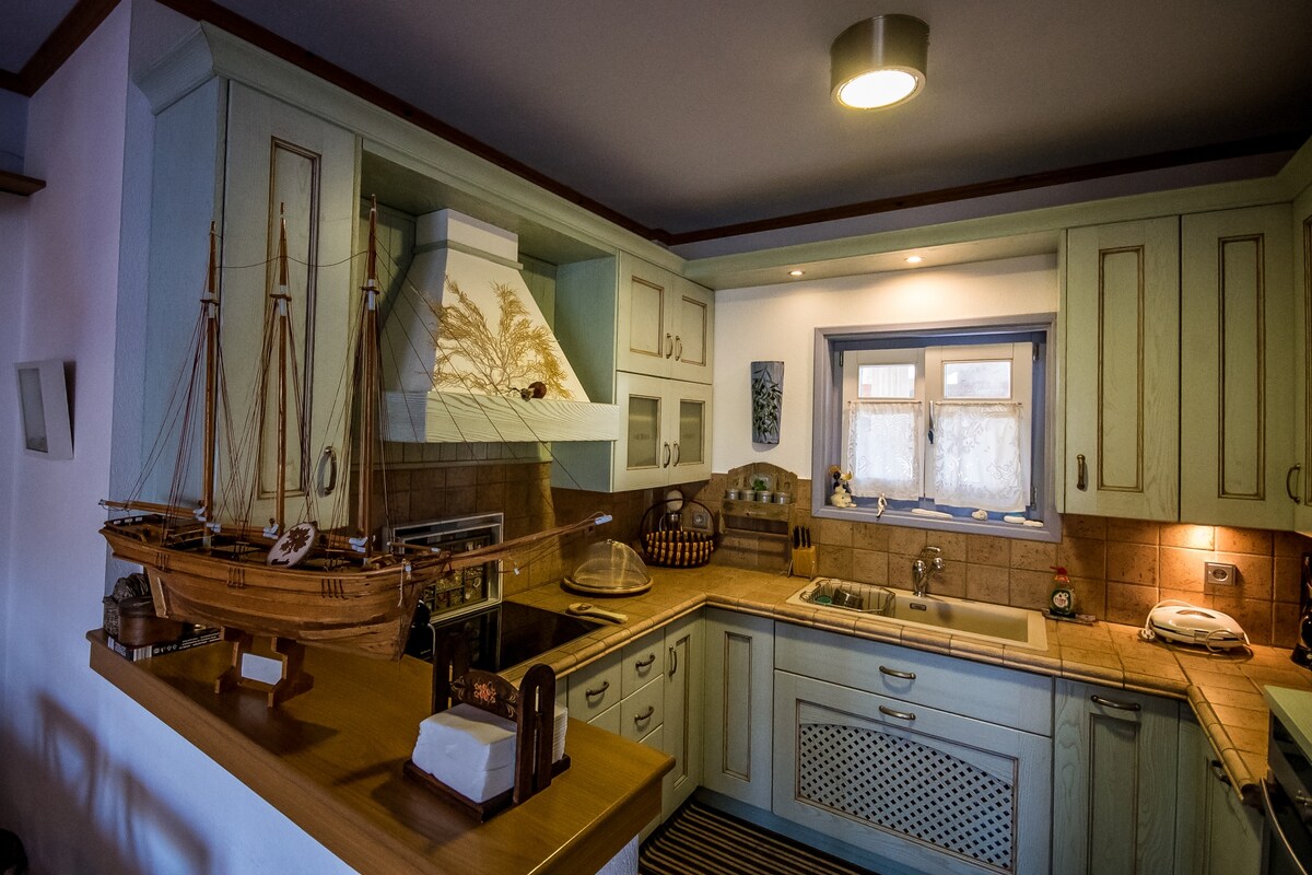 ❗️Tájékoztatunk, hogy a jogszabályok értelmében a rövid távú bérbeadásért napi 8 eurót számítunk fel, amelyet az érkezésedkor kérünk.❗️ A hagyományos Trikeri falu szívében, közvetlenül a központi tér felett található a kétszintes házunk. A 2. emelet kényelmes teraszáról a Pagasitikos-öböl kékjét nézheted. Hűvös udvarán a boltíves nyílással a falu festői házaival ismerkedhetsz meg.