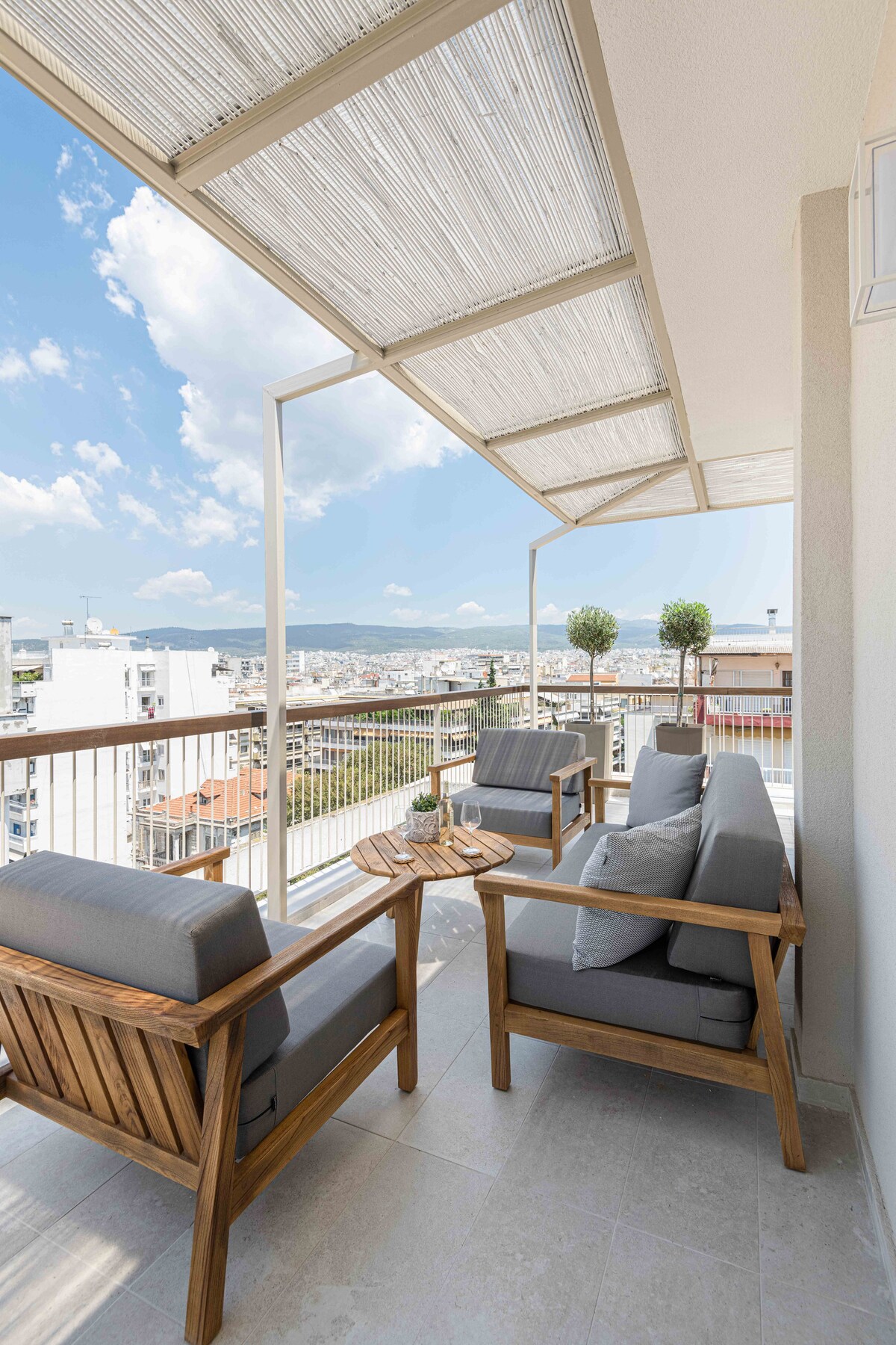 Ébredj a Thesszalonikira nyíló lenyűgöző panorámára ebben a stílusos, legfelső emeleti lakásban. A padlótól a mennyezetig érő ablakok és a tágas erkély 360°-os kilátást nyújtanak a városra és a tengerre, tökéletes a napkeltekor fogyasztott kávéhoz vagy a naplementekor fogyasztott italokhoz. A kényelemre és eleganciára tervezett szálláshely ideális kiindulópont a város szívének felfedezéséhez, miközben páratlan tájat élvezhetsz.
