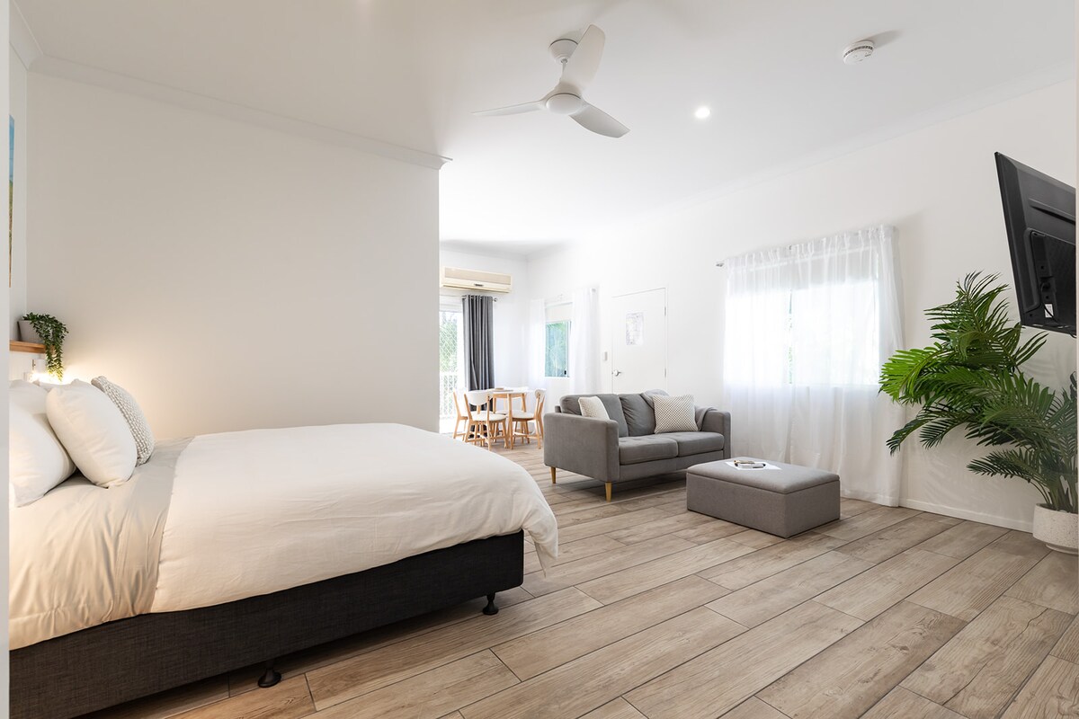 Ez a stílusosan felújított stúdióapartman kényelmes és pihentető tartózkodást kínál pároknak vagy egyedül utazóknak. Élvezd az üdülőhely összes kényelmi szolgáltatását, beleértve az úszómedencét és a grillezőt is. A strandtól, üzletektől, éttermektől és programlehetőségektől néhány percre található, kényelmes elhelyezkedésű stúdió tökéletes kiindulópont mindazok felfedezéséhez, amit Agnes Water kínál. Foglalj most, és élvezd a luxust és a felejthetetlen élményeket.