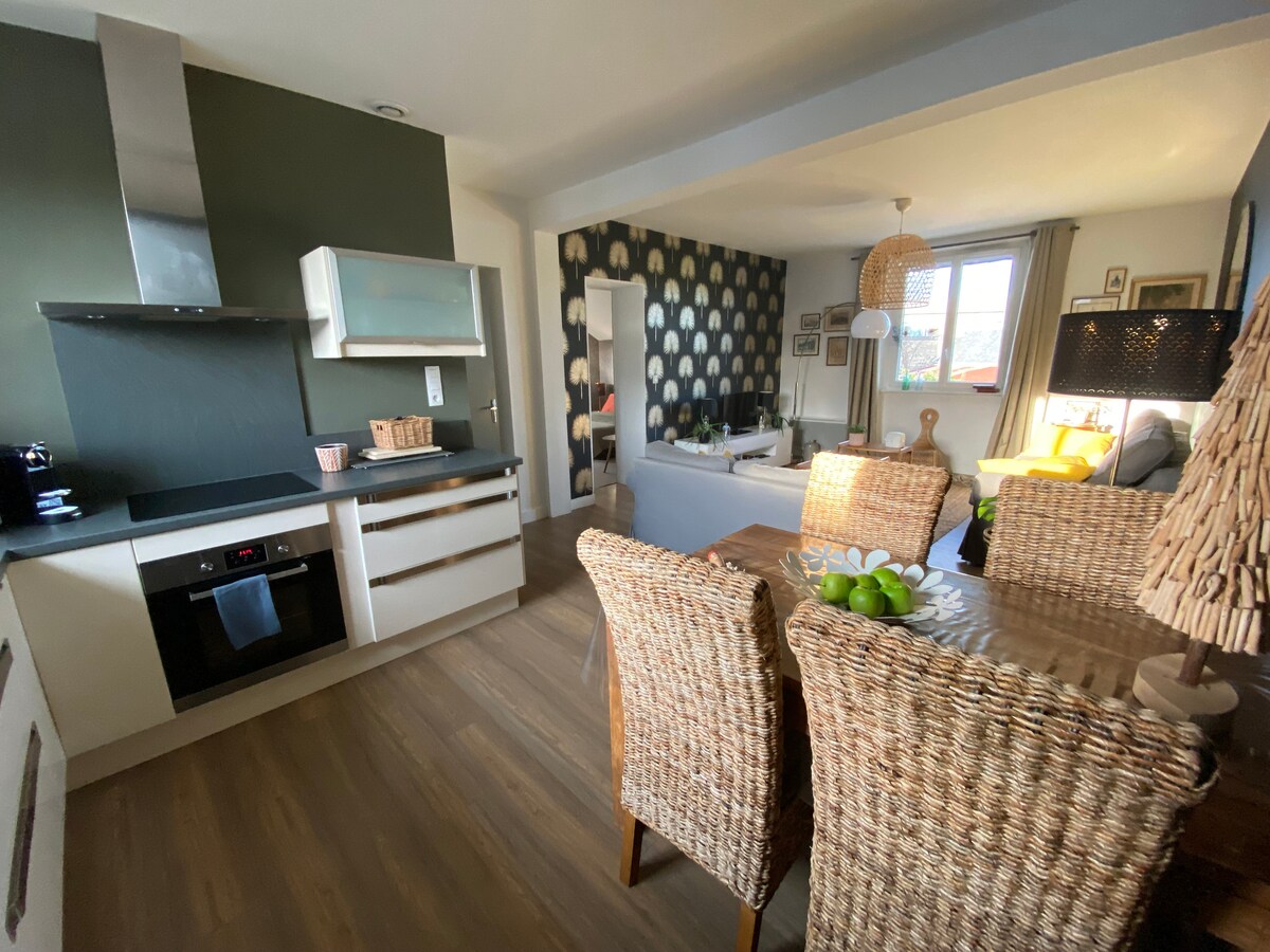 Üdvözlünk a vadonatúj „Le Cocon du Bourg d 'Agon” oldalon. Agon Coutainville-ben (50), egy 30 m2-es, 2 fős kis, hangulatos fészket kínálunk neked. A tengertől 1,5 km-re, a Manche nyugati oldalán található, és mindent megteszünk a kényelmed érdekében. Különösen a balneo fürdőkádat és a harmonikus dekorációt találod itt. 20 m2-es szabadtéri tér aperitifeknek és Barbec'-nek a szerelmesek vagy barátok számára. Wifi, TV Netflix-szel, MyCANAL, PrimeVideo.