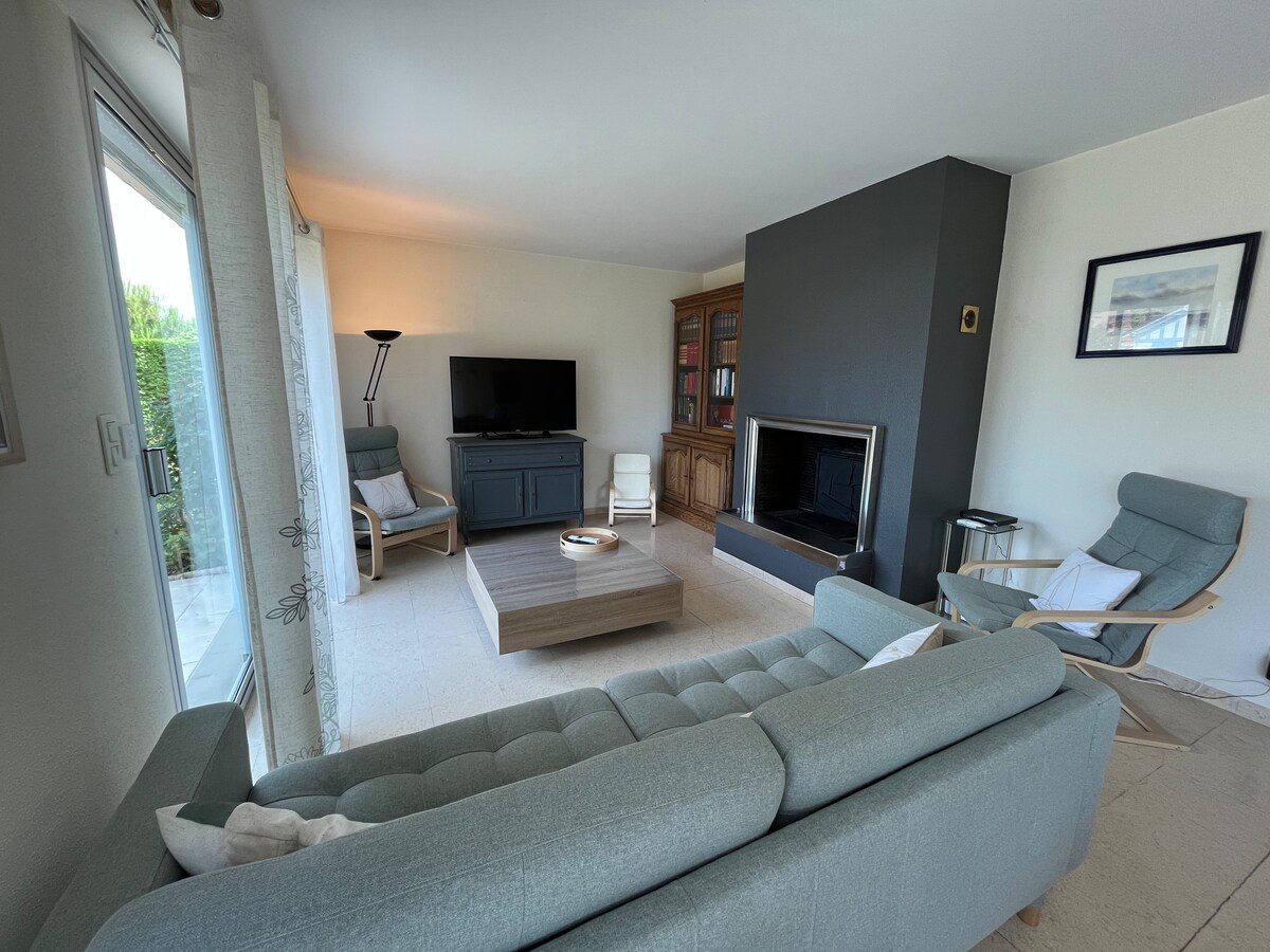 Pihenj ebben a csendes és elegáns szálláshelyen, amely teljesen új. A növényzet szívében, 400 méterre a tengertől. 3 hálószobás egyszintes ház, amelyek mindegyike saját zuhanyzóval rendelkezik. Nagy terasz fedett résszel, amely ideális a normandiai estékre! A házról készült videó elérhető.