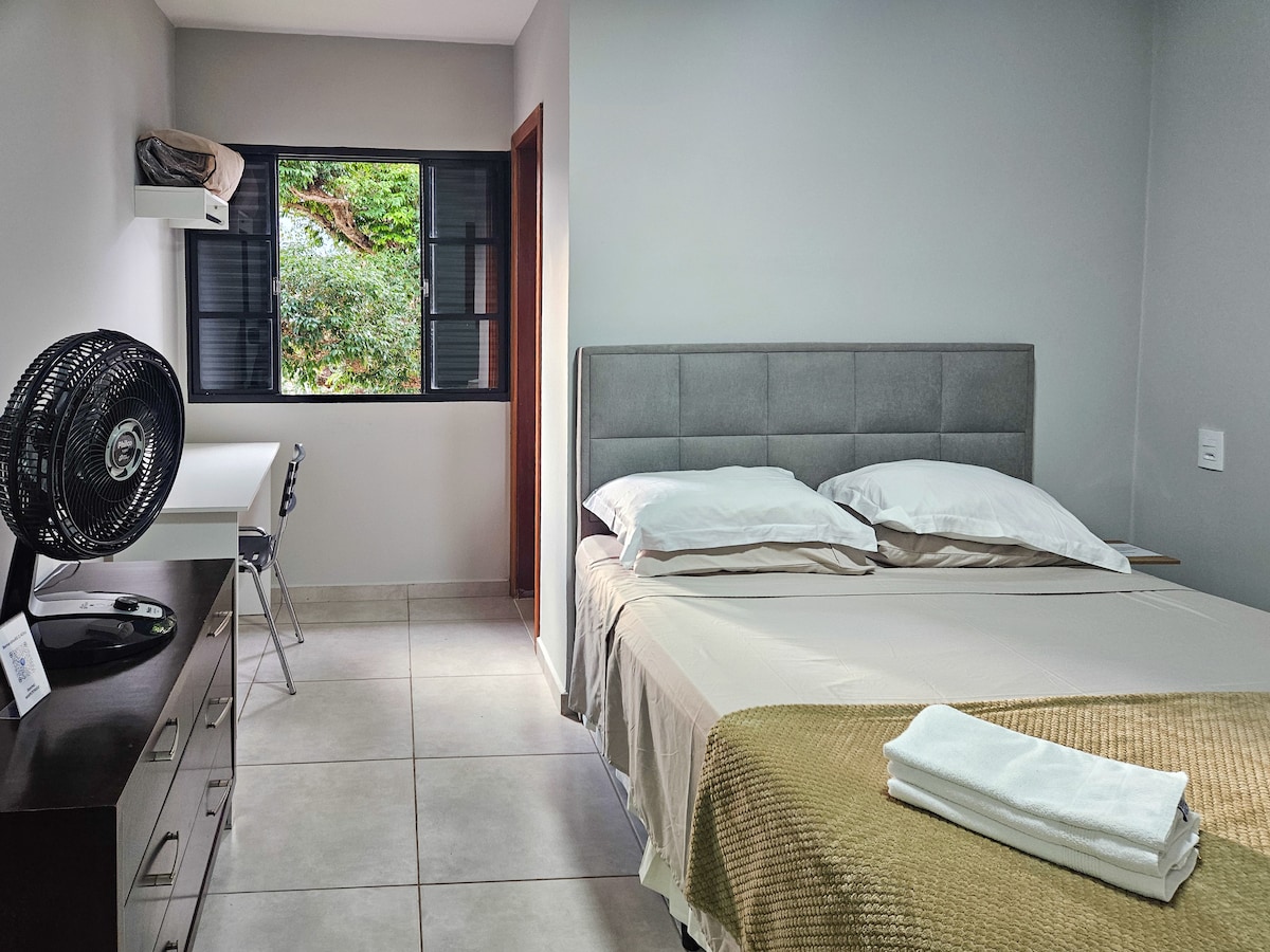 Mindössze 5 percre vagyunk a Fernão Dias Highway-től (BR-381), és a környezetünk teljesen privát, és a nyaralók bérbeadására alkalmas. Ideális, akár a városon való áthaladáshoz, akár több napot szeretnél pihenni. „Casinha da Roça” -nak hívjuk, de valójában a városon belül vagyunk, a gyönyörű Rosario tér mellett. A háziállatokat nagyon szívesen látjuk. Önállóan ellenőrizzük a vendégek egyszerű bejutását. Ez a rendkívüli kis sarok bele lesz vésve az emlékezetedbe.