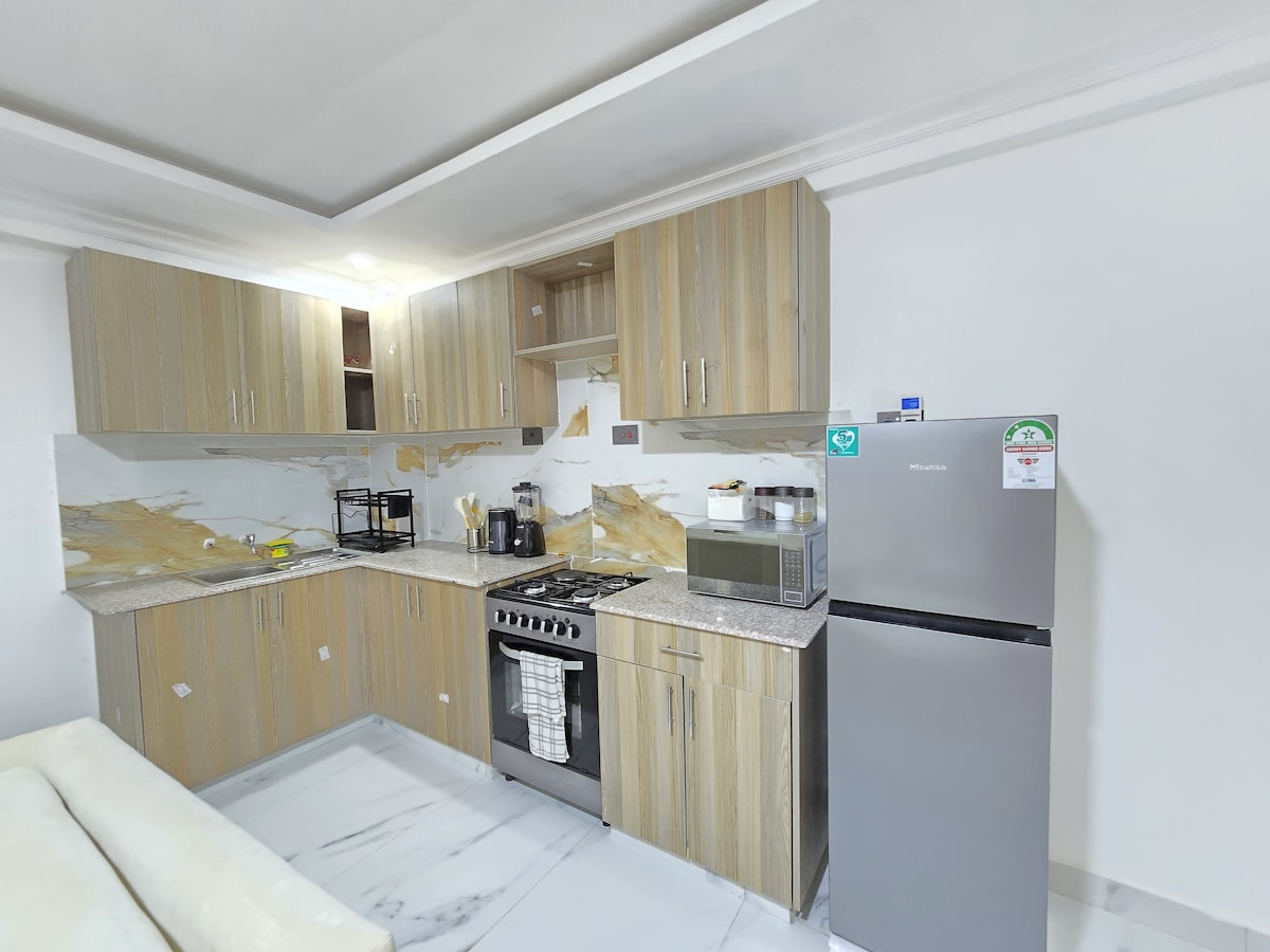 Érezd jól magad a 2 hálószobás apartmanszobáimban, amelyek központi helyen, a flancos milimani területen találhatók, 5 perc autóútra a Westend bevásárlóközponttól, ahol Java, Chandarana Foodplus,Acacia premier hotel található, 2 perc autóútra az ÁLLAMI HOUSE-top-biztonságtól. Az Impala park mindössze 400 méterre, a Dunga strandtól pedig 5 perc autóútra található. Csodálatos helyen van, ahol időt tölthetsz a családoddal, a barátaiddal vagy a vállalkozásoddal. Kényelmes rövid és hosszú távú foglalásokhoz, bőséges parkolási lehetőséggel és zöld tájjal a lakás körül.