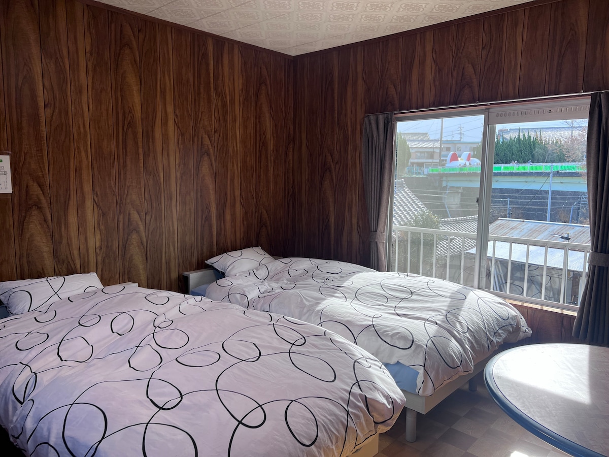 一棟和洋混搭的一戶建小樓、2樓有3間客房、和客人轉用的休息、涼衣房、洗手間、洗面台、淋浴房與洗衣房在1樓也是客人轉用、附近有大型超市、百元店、便利店、回轉壽司、燒肉店、牛排店和居酒屋昭和食堂以及日本有名的100名湯尾張温泉。 JR関西線 從名古屋站到蟹江站3站10分鐘左右 從蟹江站北口出到民宿 600米左右 提供無償接送服務。 蟹江站已裝修完畢上下電梯非常的方便。 期待我們有緣相見更期待能為你們提供更多的樂趣與服務。 2階建ての建物、2階はゲストルーム3室があります、ゲスト部屋の隣にゲスト専用の休憩室、トイレ、洗面台があります、シャワールーム、ランドリールームは1階です、ランドリールームはゲスト専用洗濯機があり、シャワールームもゲスト専用です。 お近くに川があり、大きなスーパーマーケット、100円ショップ、コンビニ、回転寿司、焼肉、ブロンコビリー居酒屋昭和食堂また日本100名湯の尾張温泉もあります。 JR関西線蟹江駅は名古屋から電車で10ぐらいです、 民宿は蟹江駅北出口から600メートルです 送迎無料サービスを提供します。