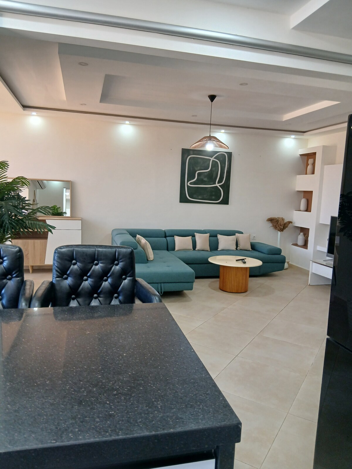 Imádni fogod ezt a szállást a Földközi-tengerre nyíló lélegzetelállító kilátás miatt az erkélyről és az ablakokból, a modern nyitott tér kialakítása miatt, egy új, csúcskategóriás rezidenciában, új, biztonságos (csak családok számára), és kivételes elhelyezkedése miatt Frange Maritime-ban, közvetlenül az ikonikus és nagyon keresett „Akid Lotfi” kerület mellett, közel az üzletekhez, éttermekhez, pékségekhez és a Palais d'Or bevásárlóközponthoz. Kert az utca túloldalán sétáláshoz vagy a családoddal való időtöltéshez.