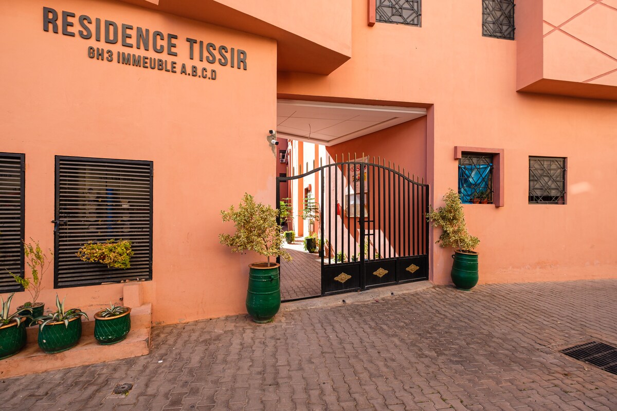 Üdvözlünk modern és világos lakásunkban,amely 5 percre van a marrákesi repülőtértől. Ideális üzleti utakhoz, átszálláshoz vagy nyaraláshoz, békés és tökéletesen felszerelt helyet kínál: marokkói nappali TV-vel, optikai Wi-Fi-vel, teljesen felszerelt konyhával, meleg vízzel, két kényelmes hálószobával és nappalival, ingyenes parkolással. rugalmas érkezés (kulcsszéf áll rendelkezésre az épület bejáratánál)
