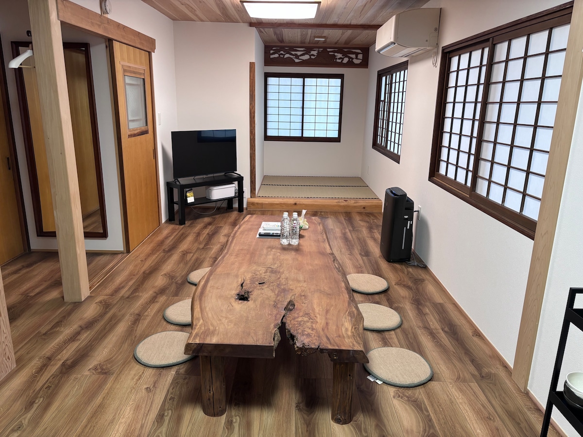 70 éves japán ház modern kényelmi szolgáltatásokkal. Élvezd a pihentető időt egy luxusszálláshelyen, amelyet tiszta cédrusdeszkák és shuraku lakkozott falak vesznek körül. A Kinka-san hegyi ösvény bejárata a közelben van, és a csúcsa nagyszerű kilátást nyújt a Gifu-kastélyra.A környéken számos látnivaló található, például a Gifu Park, a Nagara folyó, a kormoránhalászat, a Nagy Buddha és a Kawaharamachi utcái.Minden 15 perc sétára van. A szoba felszereltségéhez tartozik még egy rendszerkonyha, egy kerámia automata melegvizes fürdő, egy mosógép, egy szárítógép, egy dolgozószoba és egy gyerekszoba.Családoknak, egyedül utazóknak és munkához kapcsolódó utazásokhoz.Csendes, természetes környezetben hallhatod tavasszal a fülemülék csiripelését, ősszel pedig gyönyörű őszi leveleket láthatsz. A létesítmény környéke lejtős, ezért javasoljuk, hogy sétacipőt viselj. A 🏔 hely bája • Természetes környezet a Jinhua-hegy lábánál • 2 perc sétára a mászóút bejáratától • A Gifu kastélytoronyból nyíló kilátás a legjobb • 10 perc sétára a Gifu Park • A Nagara folyó is a közelben van, és élvezheted a kormoránhalászatot (csak korlátozott ideig) • Sétálhatsz a Gifu Great Buddha (5 perc sétára) és a Kawaramachi negyed (15 perc sétára) Kényelmes létesítmények a🍽 környéken (nem sok) • Kisbolt (10 perc séta) • Kávézók és étkezdék (gyalog 5 perc) • Szupermarket (autóval 8 perc)
