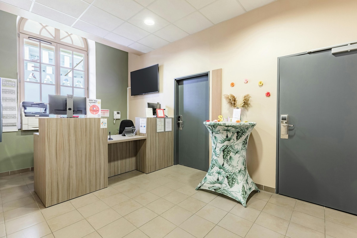 A CIS de Champagne - Ethic Etapes 10 percre található Reims belvárosától. A következőkkel rendelkezel: - ingyenes Wi-Fi - Közös, felszerelt konyha - 24 órás, személyre szabott üdvözlés - Mosoda és egyedi öltözőszekrény - Kerékpárgarázs - TV lounge - A la carte reggeli: 5,90 € - Játékok: biliárd, csocsó.