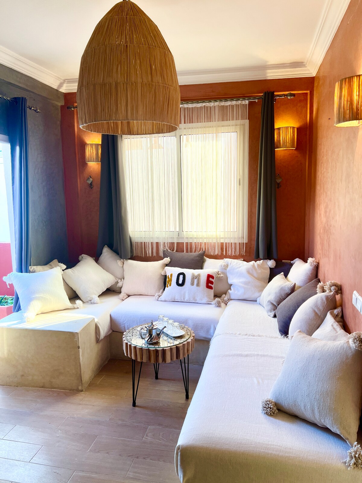 Pihenj és lazíts! Hangulatos, vadonatúj lakás Taghazoutban, tökéletes a kényelmet kereső szörfösöknek és utazóknak. 1 hálószoba, beldi elegáns nappali, teljesen felszerelt konyha, Wi-Fi, Netflix és IPTV. Biztosítsd a szálláshelyet kamerákkal, csak egy kőhajításnyira a legjobb szörfös helyektől: Anchor Point, Panorama és Hash Point. Ideális egy pihentető vagy sportos kiruccanáshoz. Foglalj most! ebben az egyedi és nyugodt szálláshelyen, egy csendes szálláshelyen az Arrganiers negyedben.