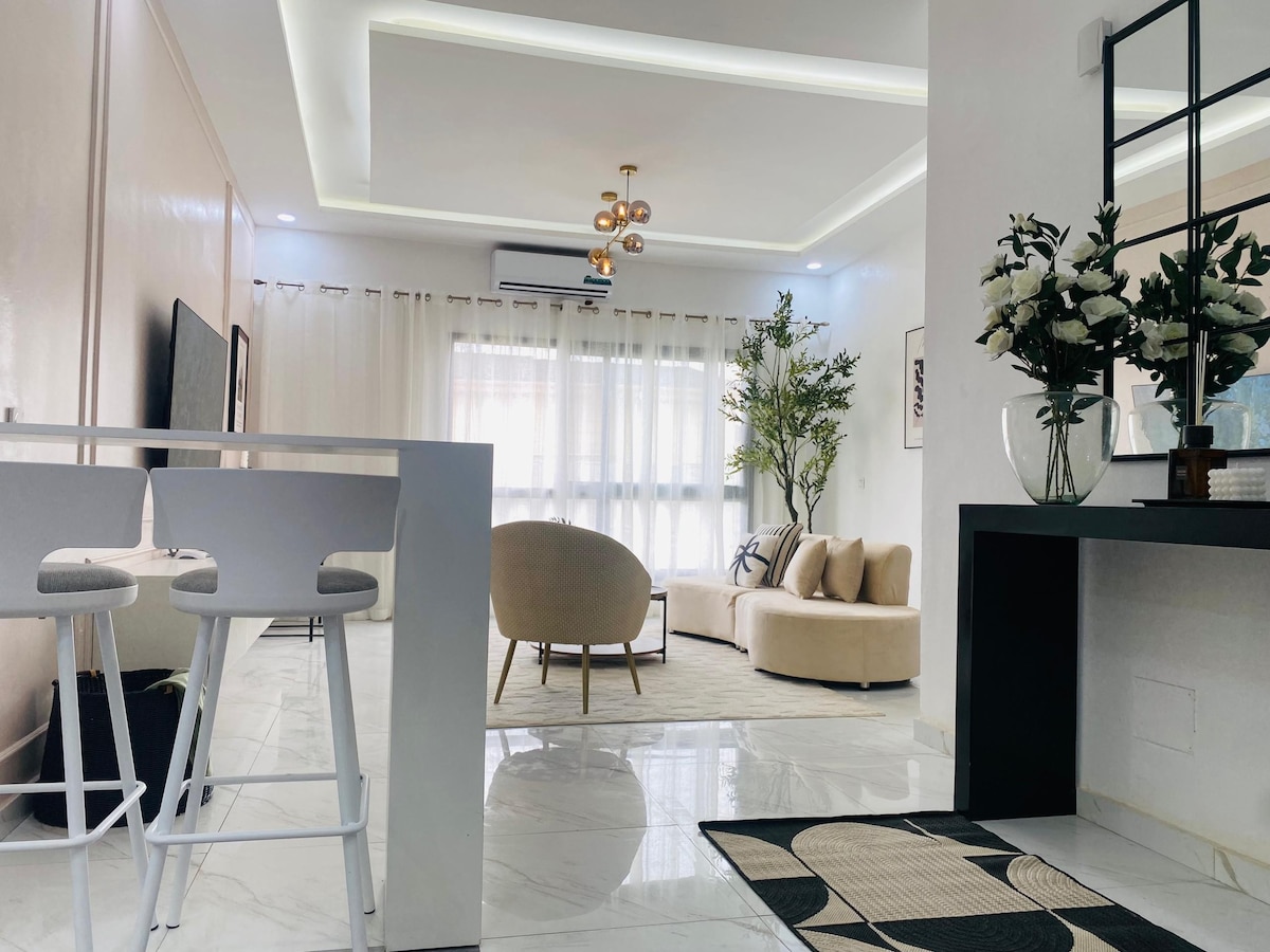Szállj meg Abidjan szívében ebben a lenyűgöző, új lakásban, amely békés, otthonos és ízlésesen, természetes színekben van berendezve, modern, pihenést elősegítő hangulattal. Ez a tágas és teljesen privát lakás egy csendes és biztonságos lakóépület 2. emeletén található, tökéletes üzleti úthoz vagy pihentető nyaraláshoz. A szálláshely 25 percre található a Plateau-tól, 35 percre a repülőtértől és 10 percre az Abidjan Malltól. Számos kényelmi szolgáltatás a közelben.