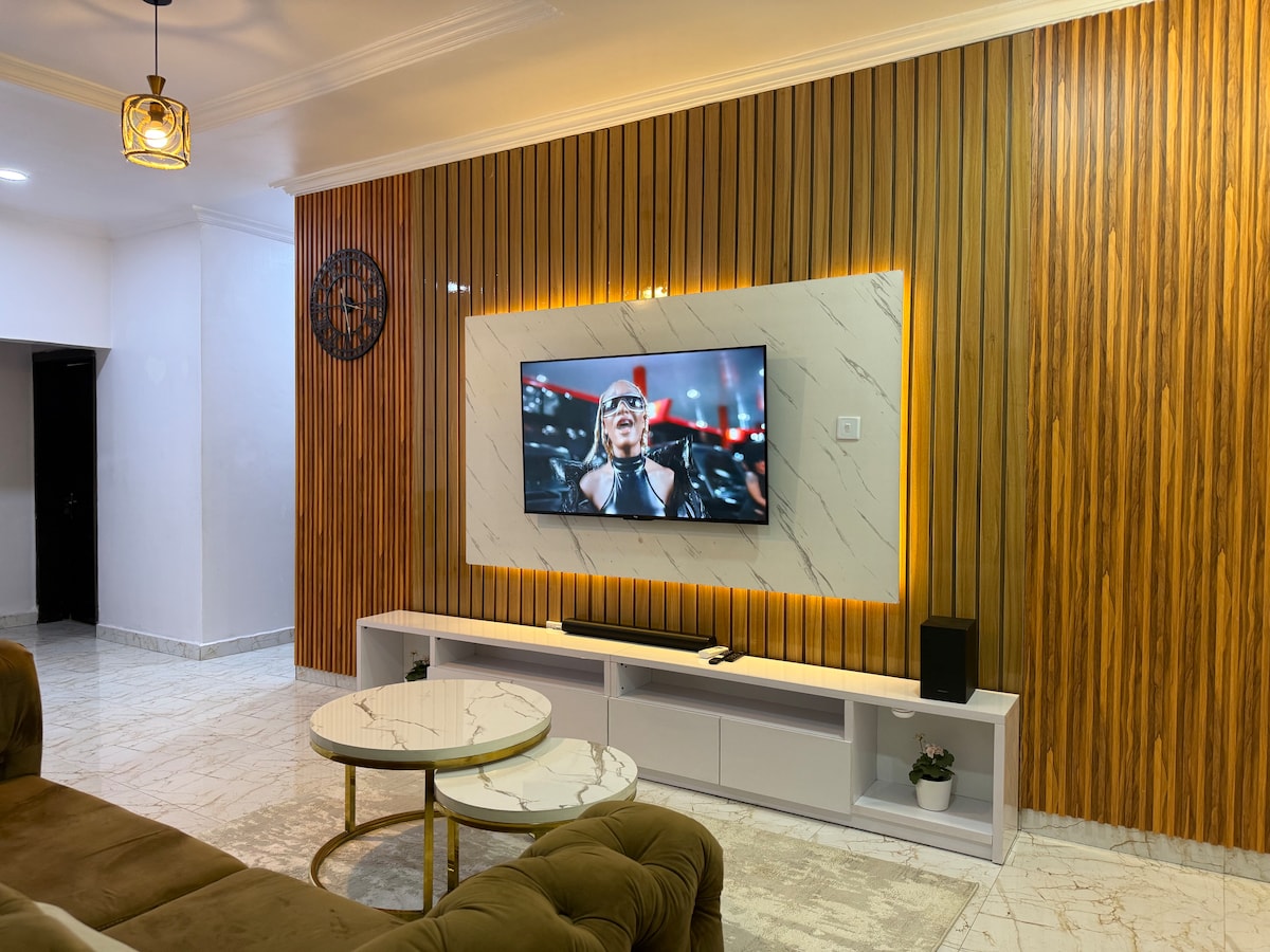 Designed for comfort and convenience, our apartment offers free high-speed Wi-Fi, 24/7 power, YouTube and full entertainment channels, and hot water. Air conditioners run only on PHCN power, while our solar system supplies all other appliances and fans. Guests enjoy a self-service breakfast setup, fully equipped kitchen, smart TV, luxurious bedding, dedicated workspace, secure parking, top-notch security, and a cozy, serene ambience—perfect for solo travelers and couples.