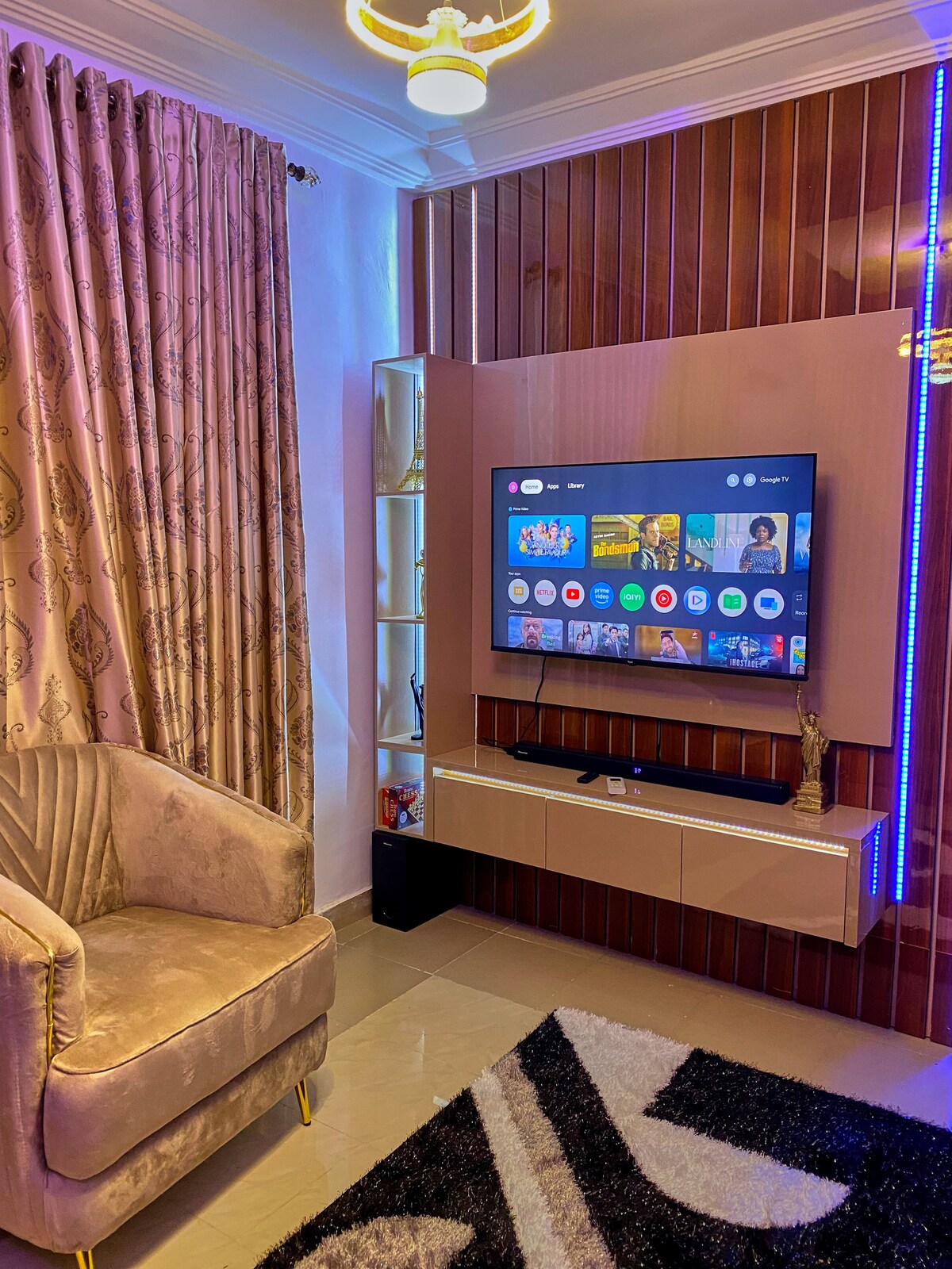 Sidemiwa Apartment - Luxurious stay, private secure, 5 minutes from the MMA International Airport, is located in Lagos. Lazíts ebben a békés és ízlésesen megtervezett menedékhelyen. A kényelmet a kortárs stílussal ötvöző hely otthonos bútorokat, környezeti megvilágítást és nyugtató légkört kínál. Ideális munkához és kikapcsolódáshoz egyaránt. Barátságos menedék, ahol pihenhetsz, feltöltődhetsz, és otthon érezheted magad. Éjjel-nappali áramellátás, napenergia, gyors Wi-Fi internet.