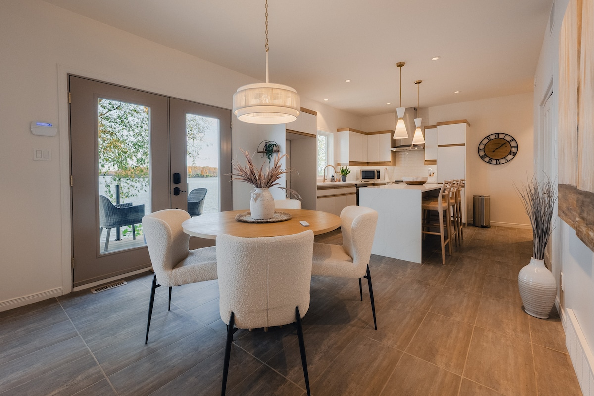 Ez egy 1000 négyzetméteres lakás egy építészeti tervezésű otthonban. Az apartmanhoz vezető emeleti séta során a vendégek a padlótól a mennyezetig terjedő ablakokon keresztül megcsodálhatják a Szent Lőrinc-folyóra nyíló panorámát. A konyha fel van szerelve mindennel, amire szüksége van a főzés és a szórakozás. Az apartmanban van padlófűtés és légkondicionáló az egész. A vendégek saját vízparti udvarral, grillezési lehetőséggel, tűzrakóval és dokkolóval rendelkeznek. A hajó dokkolása néha kérésre lehetséges.