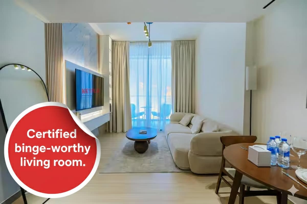 Step into modern luxury with our stunning 1-bedroom Airbnb in the heart of Dubai. Featuring sleek interiors, a fully equipped kitchen, a chic living area, and breathtaking city views, this space is designed for pure comfort and elegance. Moments away from world-class shopping, dining, and entertainment, it’s the perfect escape for an unforgettable stay. Book now and elevate your Dubai experience!