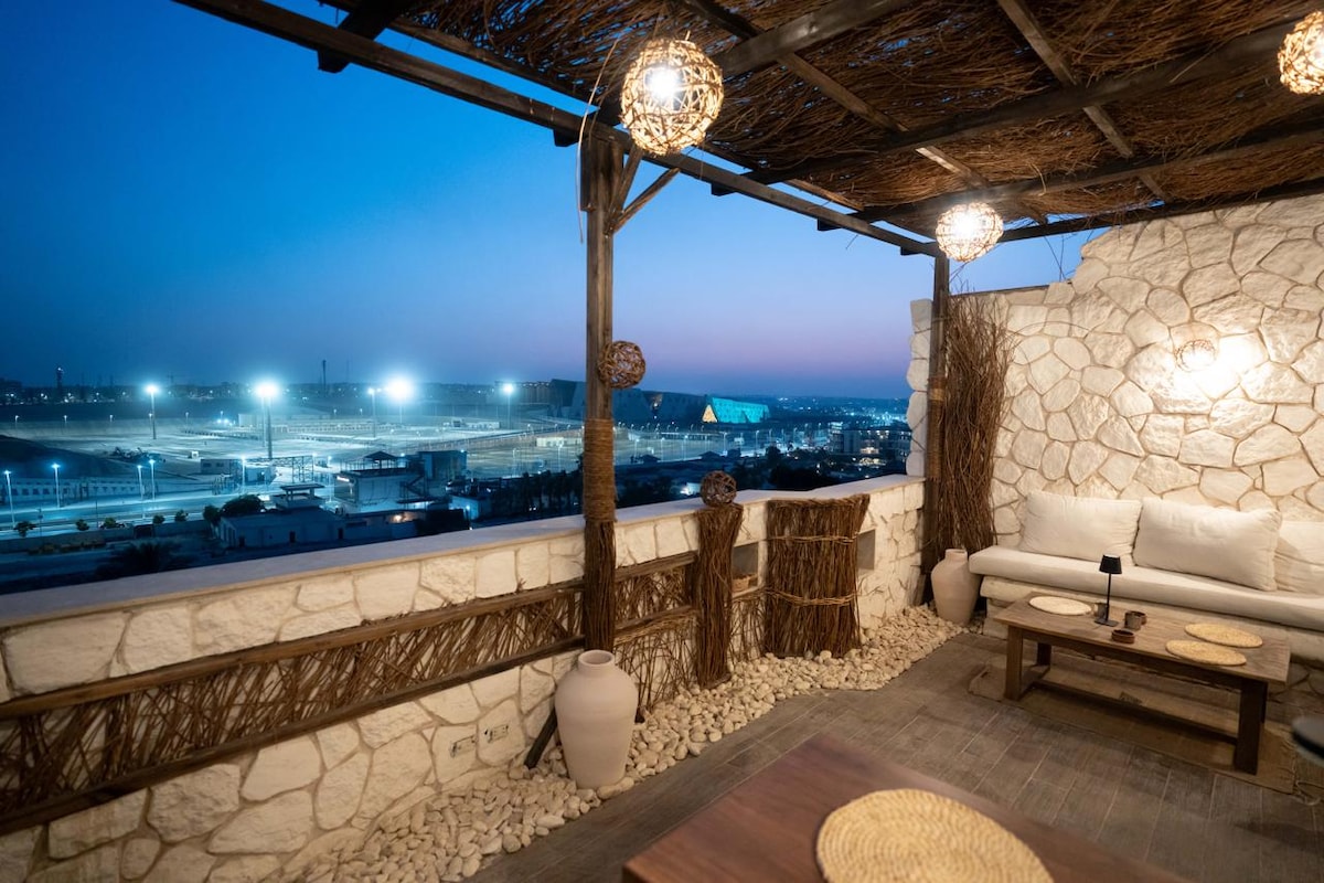 Ébredj a piramisok teljes látványával a saját pezsgőfürdődben! A Shiny Pyramids Inn közvetlenül az új Grand Gate bejárat előtt található,، mindössze 15 percre a Grand Egyptian Museumtól. Semmi sem takarja a kilátást, csak a nyitott égbolt és a gízai csodák. Nonstop elérhető csapatunk a rendelkezésedre áll. Csendes, feltörekvő környéken található – nyers, valódi és a történelem közelében.