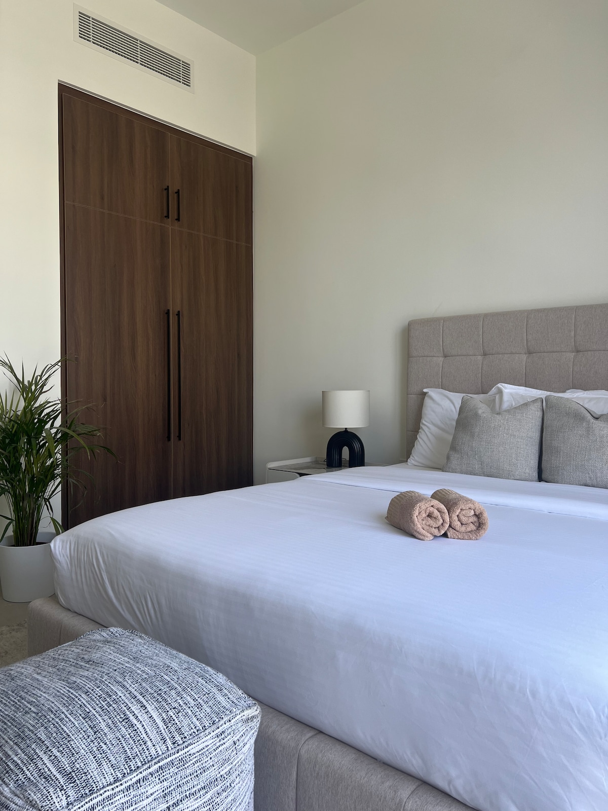 GV Holiday Homes DXB – ahol a nyugalom, a kényelem és a minimalista luxus találkozik. Akár családdal utazol, akár hosszú nyaralásra mész, gyönyörűen berendezett, két hálószobás apartmanunk a Town Square Dubai-ban tökéletes otthon távol az otthonodtól. Egy nyüzsgő, családbarát közösségben található, számos kényelmi szolgáltatással, hogy a szálláshelyen töltött időd pihentető és könnyed legyen.