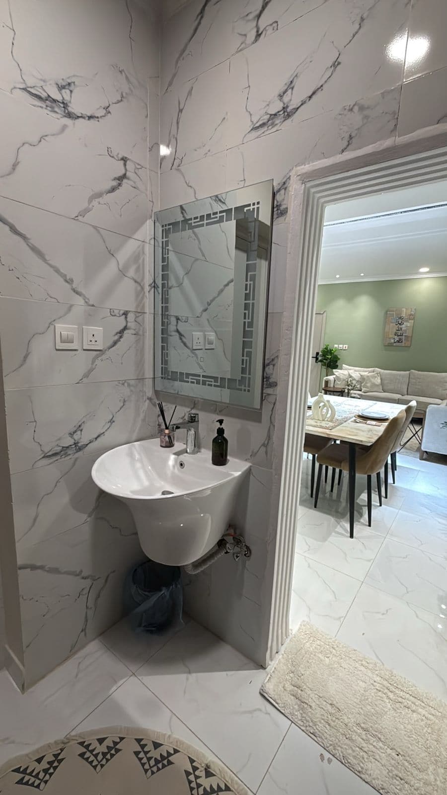 Pihenjen ebben a csendes és elegáns lakásban. Egy főágyas stúdió ülőhellyel, amely tisztaságáról és csendjéről ismert az első emeleten. Önálló bejelentkezés Ingyenes kávé, tea és víz Korai bejelentkezés és késői kijelentkezés lehetősége a rendelkezésre állás függvényében. Nagy figyelmet fordítunk a tisztaságra, és a technológiát használjuk a takarításhoz (intelligens Yufi porszívó) és technikai légfrissítők, mivel az ágyneműt kimosják, és a helyet teljesen fertőtlenítik minden vendég után 100%-ban szaúdi irányítás alatt. Van egy házigazda, aki a női részleggel foglalkozik, Örömmel állunk rendelkezésére és segítünk