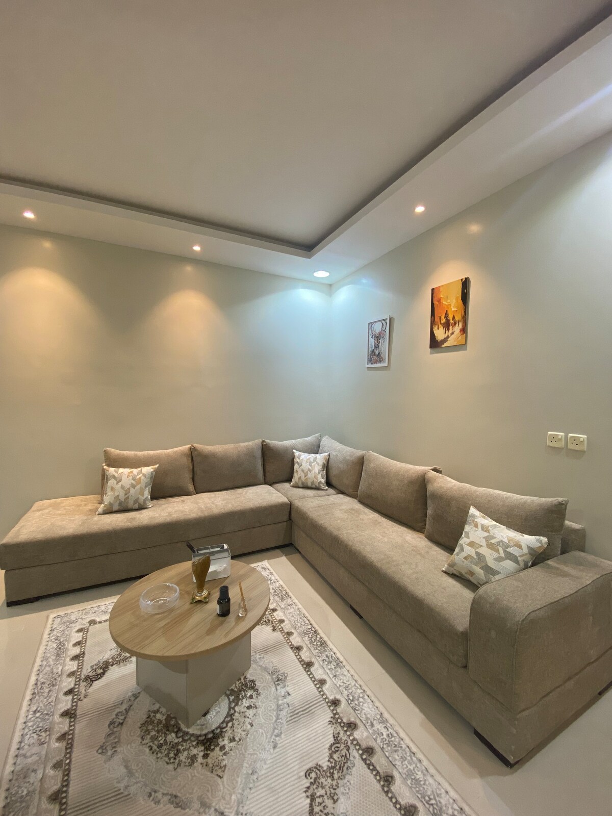 Luxuslakás Al Kharj közepén. A lakás megfelel azoknak, akik kellemes időt szeretnének tölteni, és a fürdőszobán kívül luxus nappalival és hálószobával is rendelkezik.