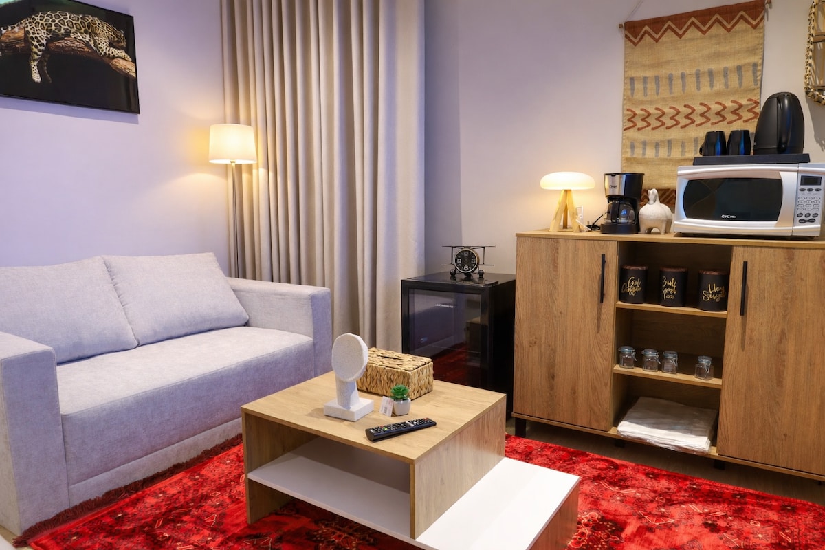 Vadonatúj luxusstúdió stílusos, modern dizájnnal Elegáns, modern stílusú stúdió az Al Hamra negyedben, gondosan felszerelve, hogy már az érkezés első pillanatától kezdve csendes és kényelmes szállást biztosítson. 65 hüvelykes okosképernyővel és 300 Mbps sebességű, munkavégzésre és megtekintésre alkalmas gyors internettel, valamint privát Netflix-fiókkal rendelkezik. – Önálló bejutás és hozzáférés bármikor. – Egy egyszerű kávés sarok, ahol élvezheted a kávédat. Tökéletes stúdió utazóknak, pároknak vagy azoknak, akik kényelmes és rendezett szállást keresnek.