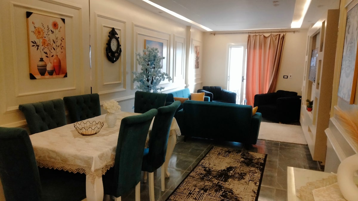 Ennek az egyedi helynek saját stílusa van, és a hely nagyon szép helyen található a Földközi-tenger partján, ahol a lakás Sidi Bishr Miami területén található, amely bevásárlóutcáiról és friss ételeiről ismert. Minden, amire szükséged van, a közelben van, és rengeteg szolgáltatás van körülötted , ahol két perc sétára van a híres Khalid Ibn Alwaleed Street.