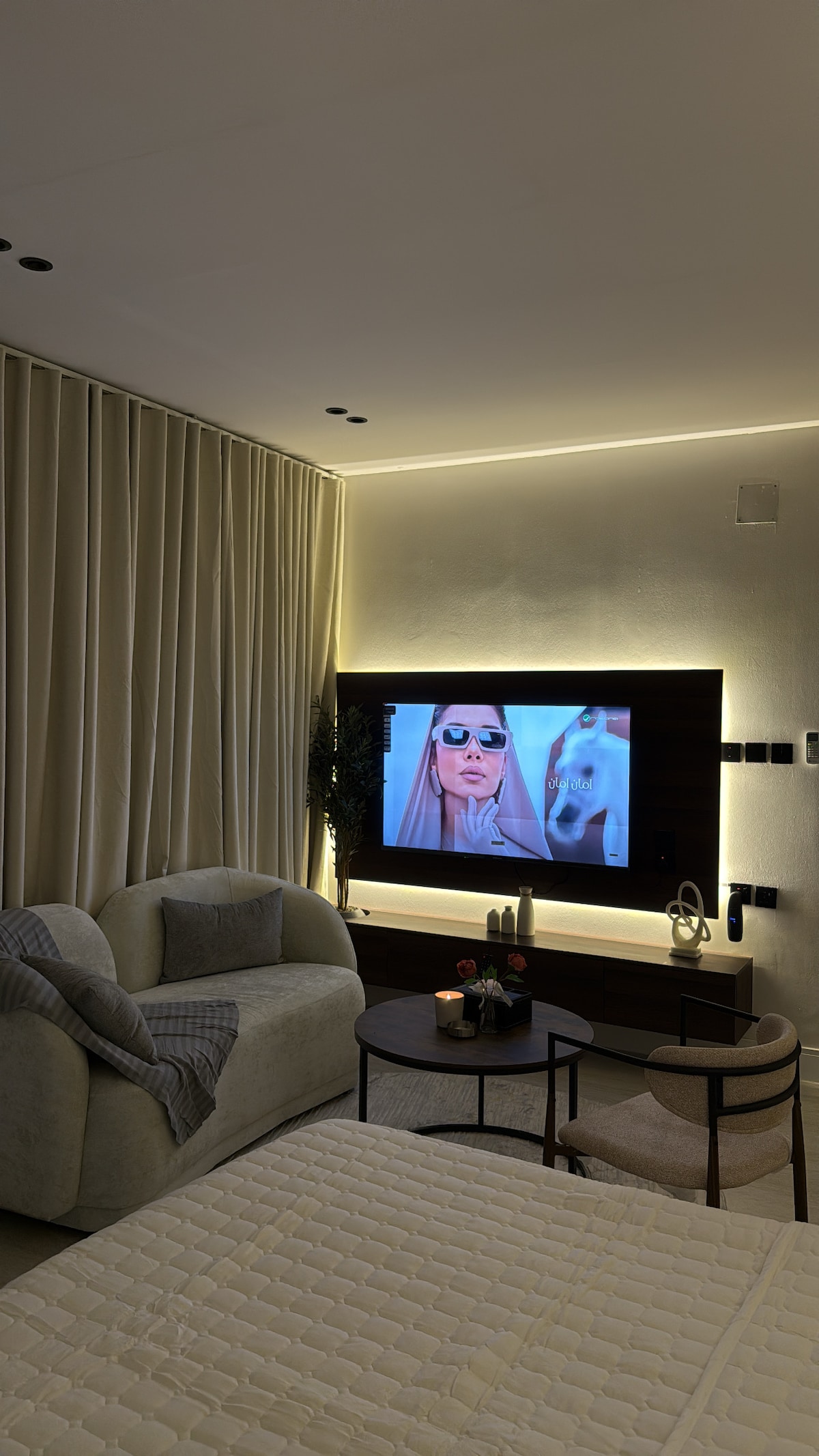 هذا المسكن الأنيق مثالي للرحلات الجماعية. استرخ في هذا المسكن الهادئ والأنيق بالحي الراقي واستمتع بتجربة مريحة ومتكاملة حيث تتميز الوحدة : - سهولة الوصول مشياً إلى حديقة وممشى، يوجد توصيل لمتجر بقالة، مغسلة ملابس. - قربها من الدائري - دخول ذاتي - صالة واسعة مفتوحة على الشرفة بجلسة مطلة - موقف خارجي خاص امام المبنى - غرفة المعيشة + شاشة 70 بوصة بجودة عالية لتجربة مشاهدة ممتعه + اشتراك نتفلكس - غرفة سينما بشاشة ٩٠ بوصة بجودة عالية لتجربة مشاهدة ممتعه + اشتراك نتفلكس