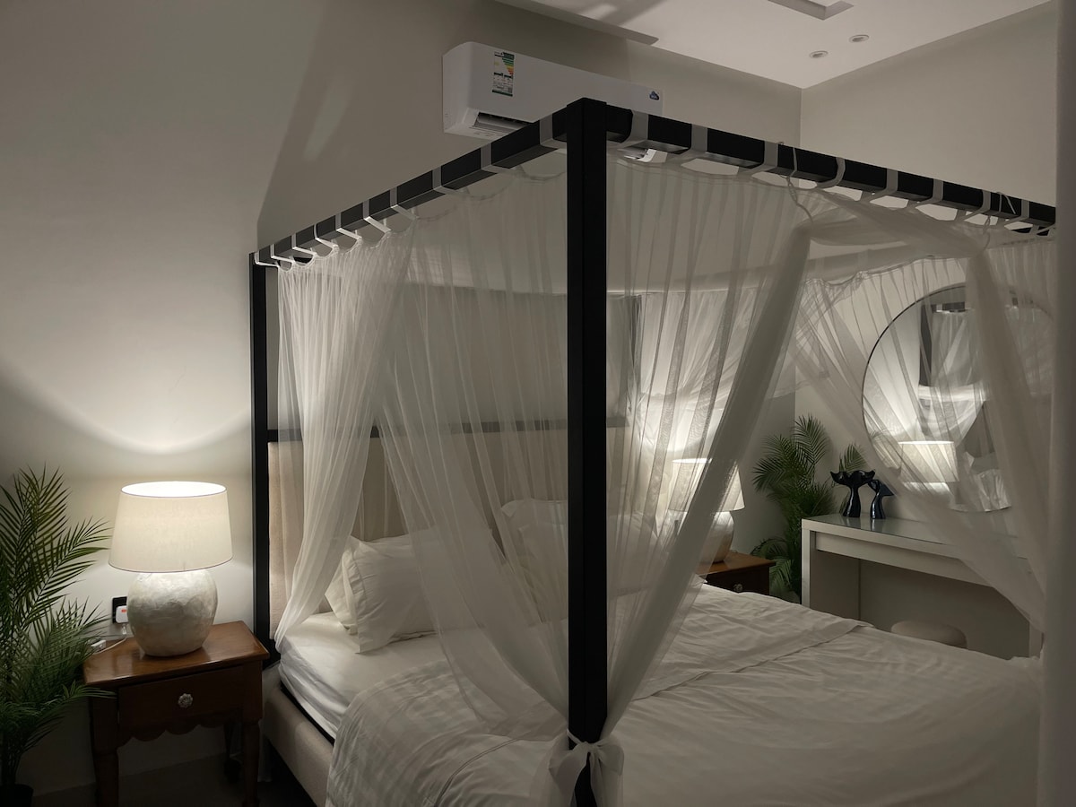 Élj stílusosan ebben a bohó-sikkes 1 hálószobás lakosztályban Dhahrat Labanban! Földszint privát hangulattal, hangulatos világítással, dizájnerbútorokkal, gyors Wi-Fi-vel, okos tévével és teljesen felszerelt konyhával. Tökéletes szakembereknek vagy pároknak, akik meleg, pihentető szállást keresnek a KSU és a város legfontosabb helyei közelében. Butikhotel hangulat – drága árak nélkül.