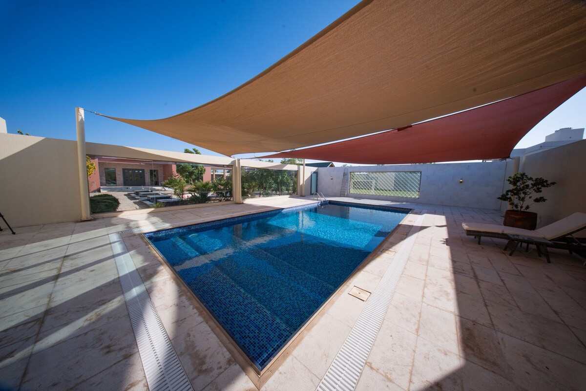 Élvezd a kifinomult és nyugodt légkört Shaden bárjában, amely ideális hely családok vagy barátok számára. Tágas ülőhelyekkel, integrált kényelmi szolgáltatásokkal, gyönyörű szabadtéri ülőhelyekkel és tágas kerttel rendelkezik, és nem felejtkeztünk meg gyermekei örömében sem, és gyermekjátékokat biztosítottunk számukra a szabadban, valamint a családi pénteki összejövetelekhez alkalmas pajtaterületet, ahol a kertben professzionálisan elosztott, halk fényekkel A medence fűtőrendszerkezettel is rendelkezik, hogy télen is működjön Körülbelül 55 percre (65 km) a maszkati repülőtértől